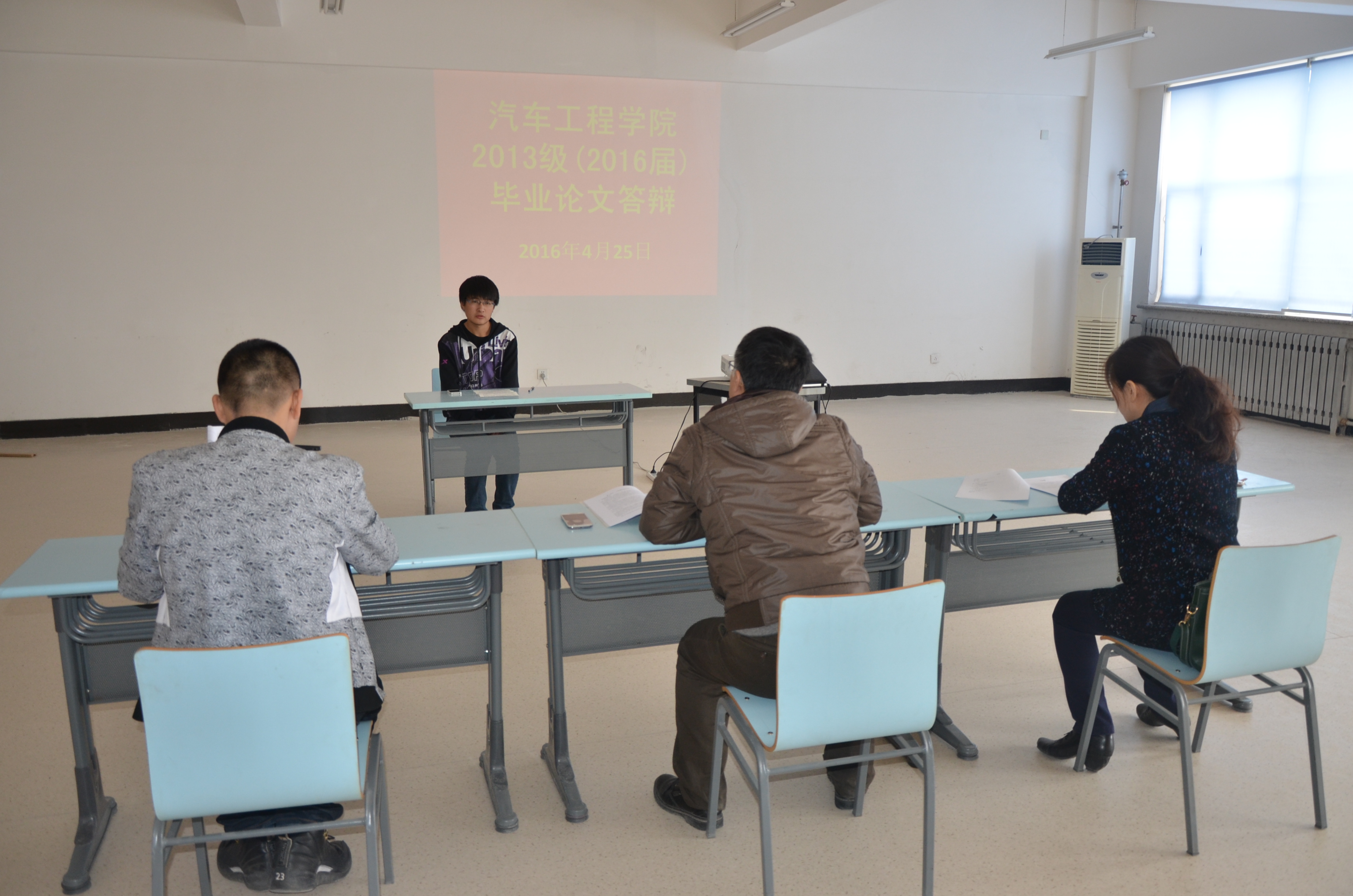 为了进一步了解毕业生毕业论文质量,考察毕业生的学术研究能力,从4月25日起至5月8日,汽车工程学院将陆续开展2016届毕业生毕业论文答辩工作,本次答辩工作分为8组进行,遵照以学生为本的原则,依据学生的实际情况,本次答辩分为校内答辩、企业答辩和网络答辩三种形式进行,学院将派出4名教师赴浙江吉利公司进行企业现场答辩。汽车工程学院院长赵宇、副院长王慧怡全力支持本次答辩工作,汽车工程学院2016届全体毕业生将参加此次答辩会。