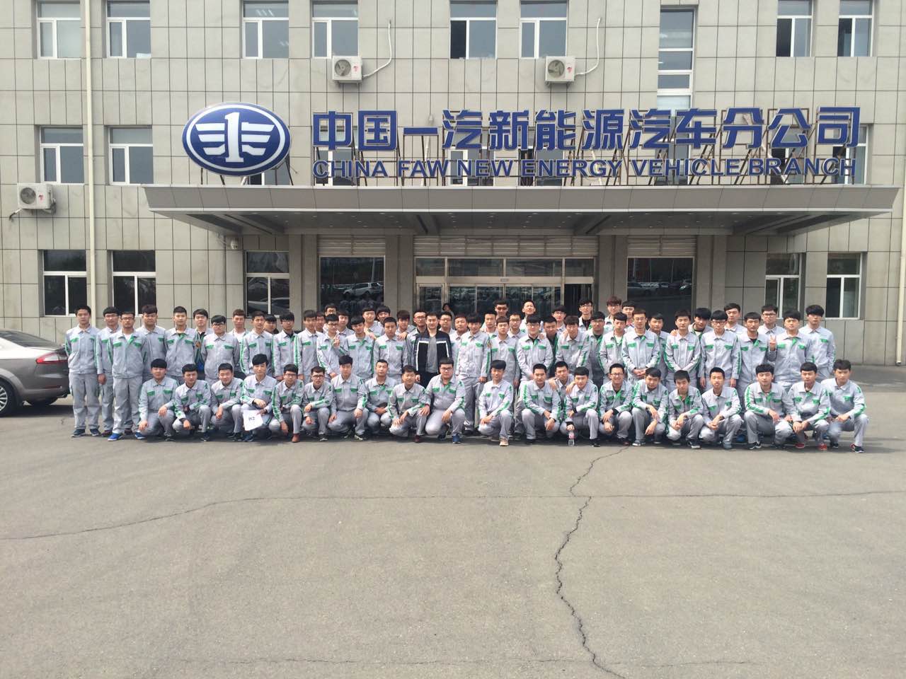 自2015年11月11日,我校与中国第一汽车集团公司新能源分公司合作成功签约起,我校积极与一汽新能源公司沟通,共同探讨人才培养模式,经过双方不断研讨,决定派遣2015级新能源汽车技术专业学生赴一汽新能源公司顶岗实习。
