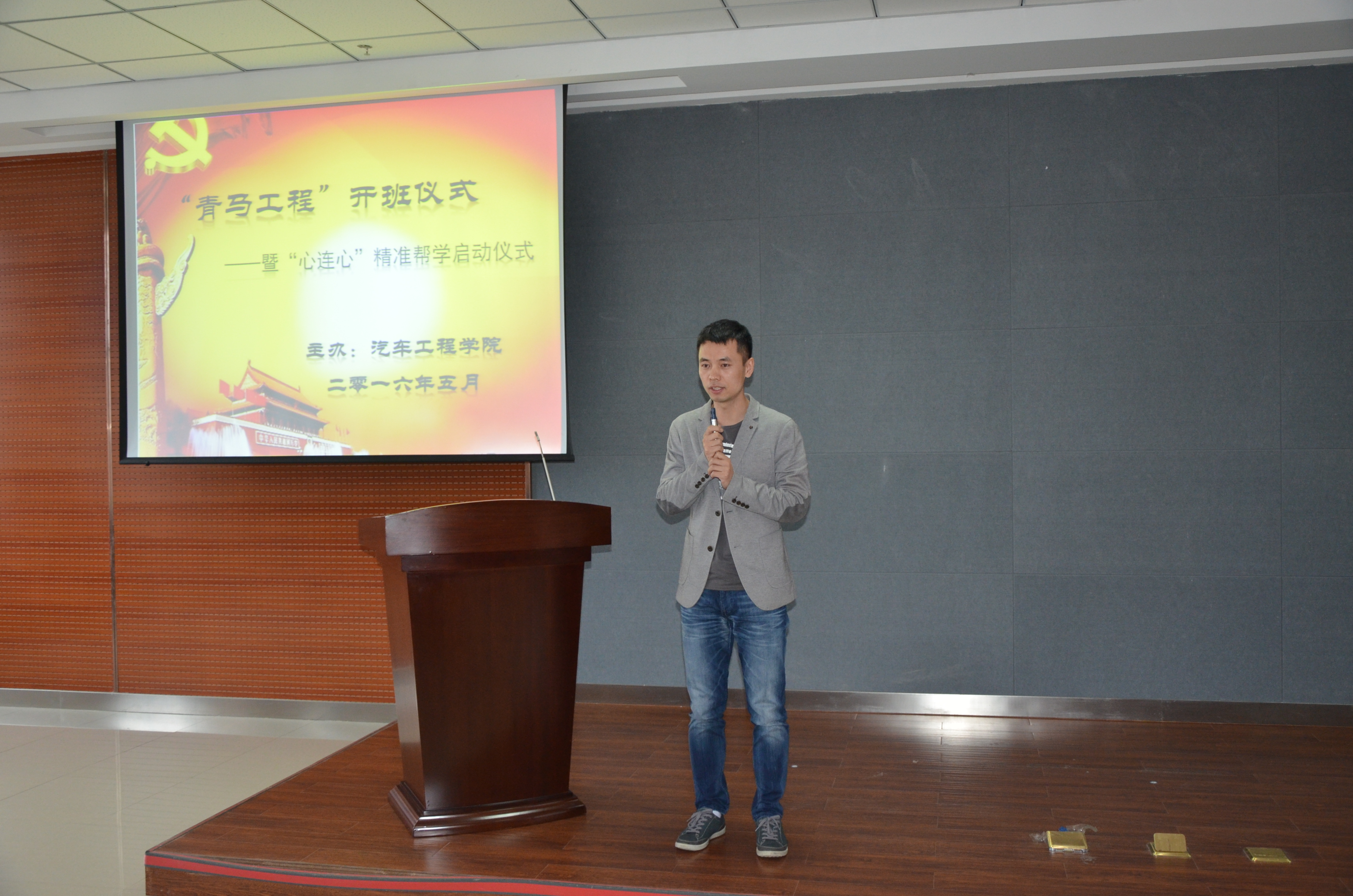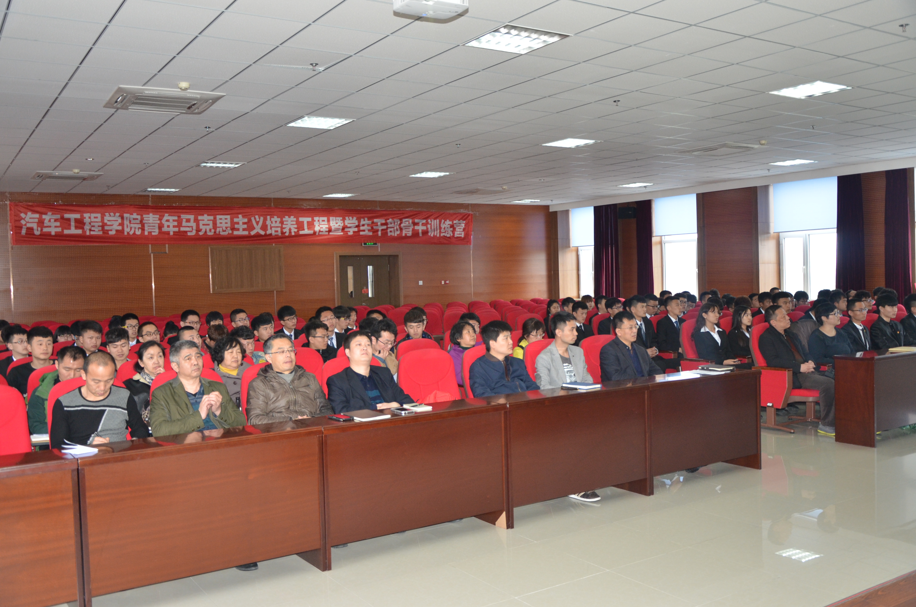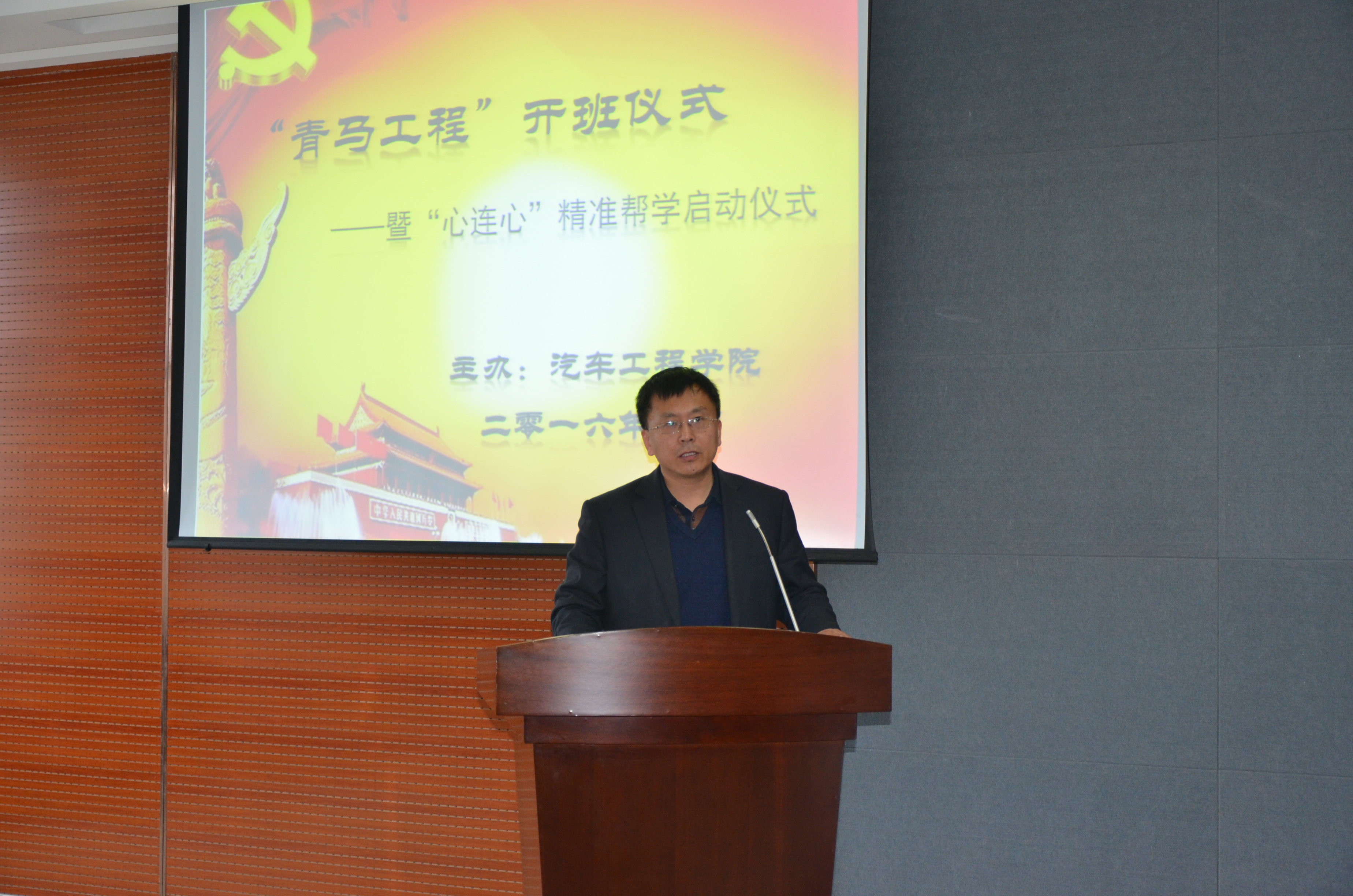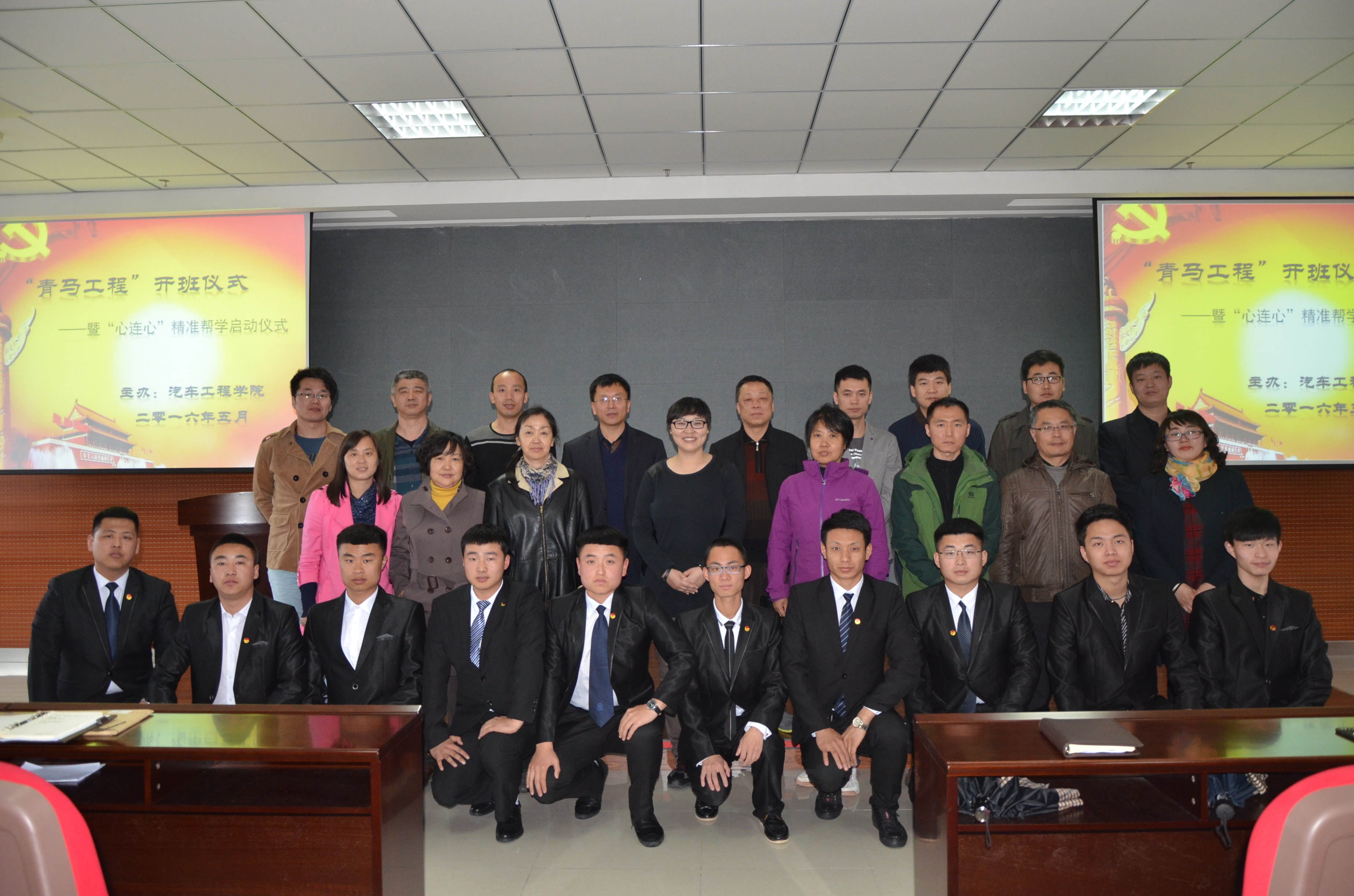 2016年5月3日下午,汽车工程学院第一期“青年马克思主义培养工程”开班仪式暨“心连心”精准帮学启动仪式在培训部401室成功举行。学生处副处长王伟,校团委书记赵良富、汽车工程学院党支部书记赵宇、汽车工程学院副院长王慧怡、汽车工程学院院长助理齐琦、汽车工程学院全体党员教师及50名“青马”学员和59名精准帮学对象、全体学生会干事出席了会议。会议由汽车工程学院分团委负责人杨宇主持。