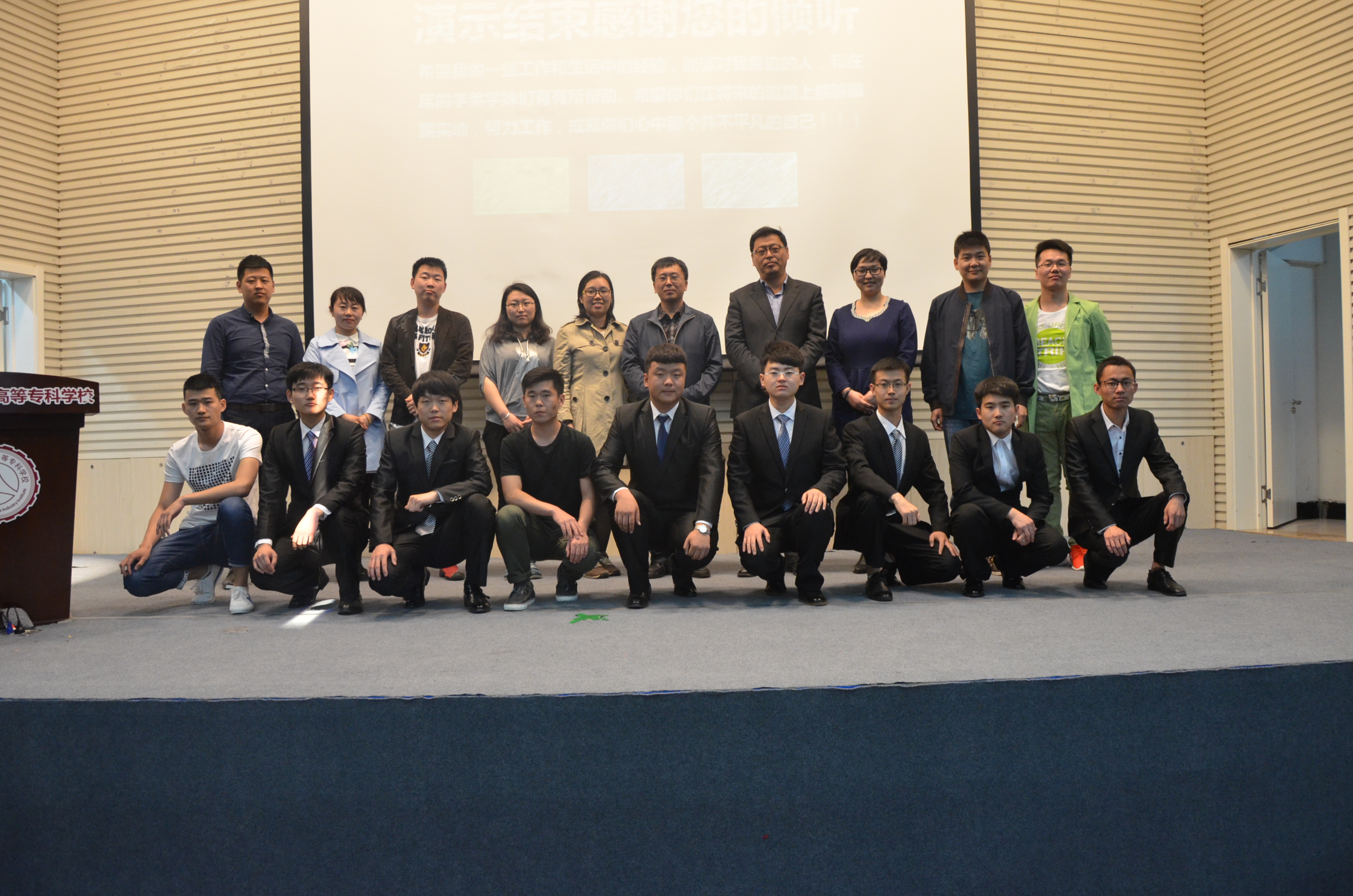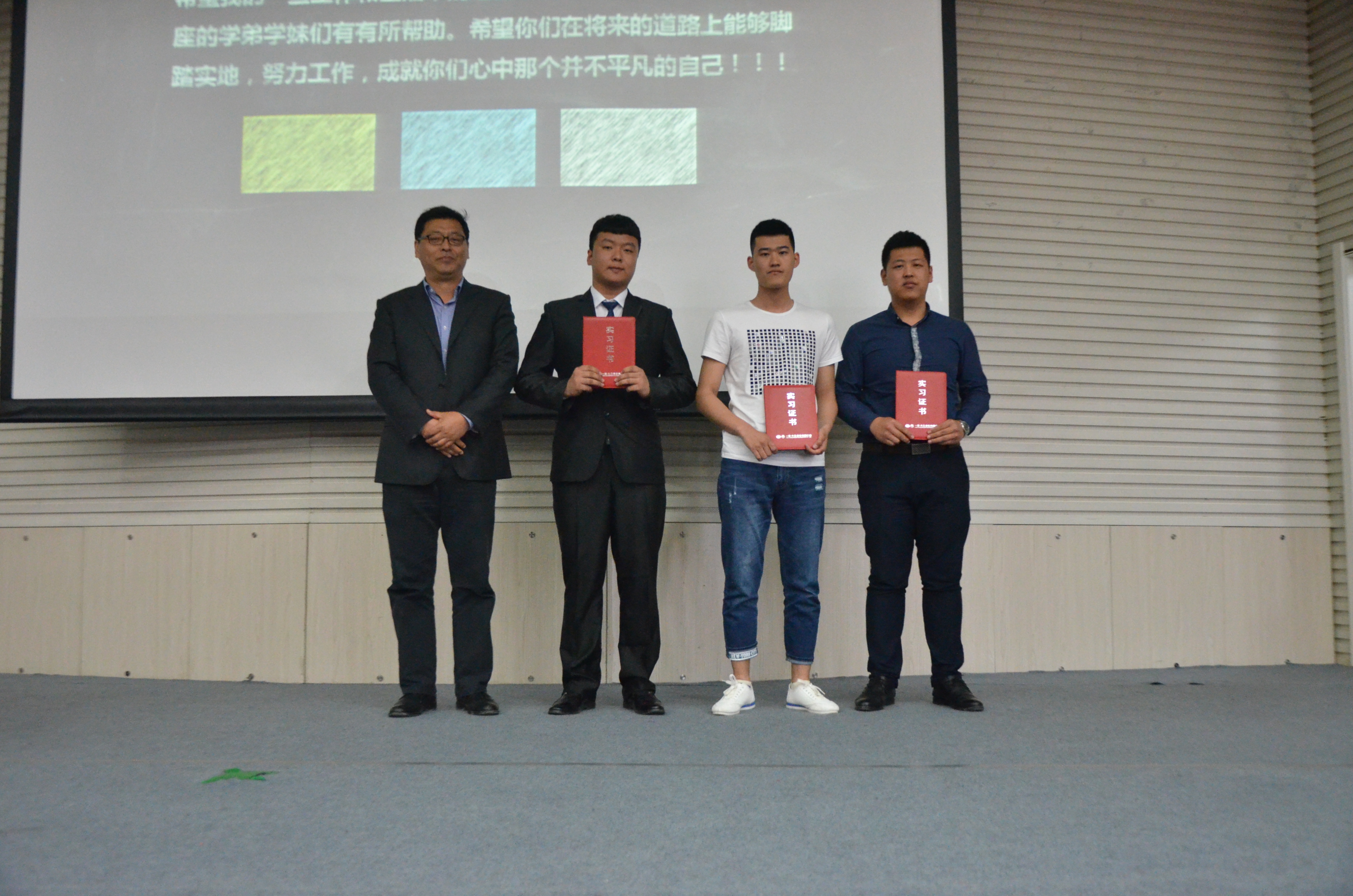 2016年5月17日下午,汽车工程学院在校图书馆报告厅举行2014级学生“助力中国制造2025,我为自己颁奖”实习成果分享交流会,长春汽车工业高等专科学校校长助理胡国良、教务处实习管理科科长杨东旭、管理教师王航、一汽大众轿车股份有限公司一厂总装班组长郭晓乐、汽车工程学院院长赵宇、副院长王慧怡、办公室主任齐琦、汽车制造与装配技术专业教研室主任王有坤、各年级辅导员及学院2014级、2015级500余名学生参加了本次交流会。会议由2014级辅导员苏崇刚主持,交流、颁奖形式新颖,多维度总结学生实习所取得的成果,成绩优秀。
