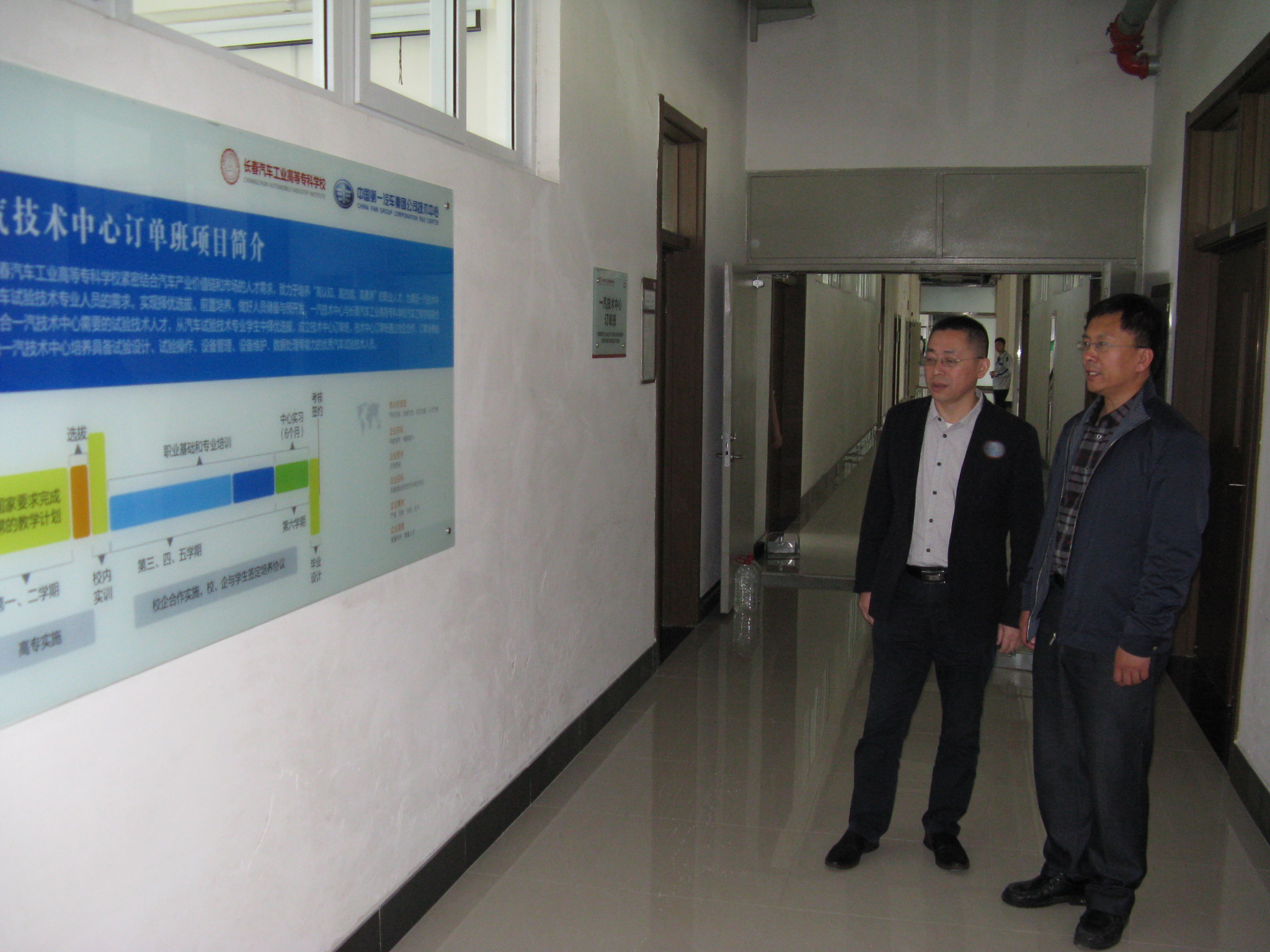 座谈后,众人一起参观了汽车工程学院实训基地,赵宇院长为客人介绍了实训基地各区域的功能以及专业的相关情况。