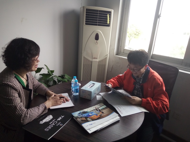图三:英伦帝华人事部经理和我校杨光伟老师洽谈