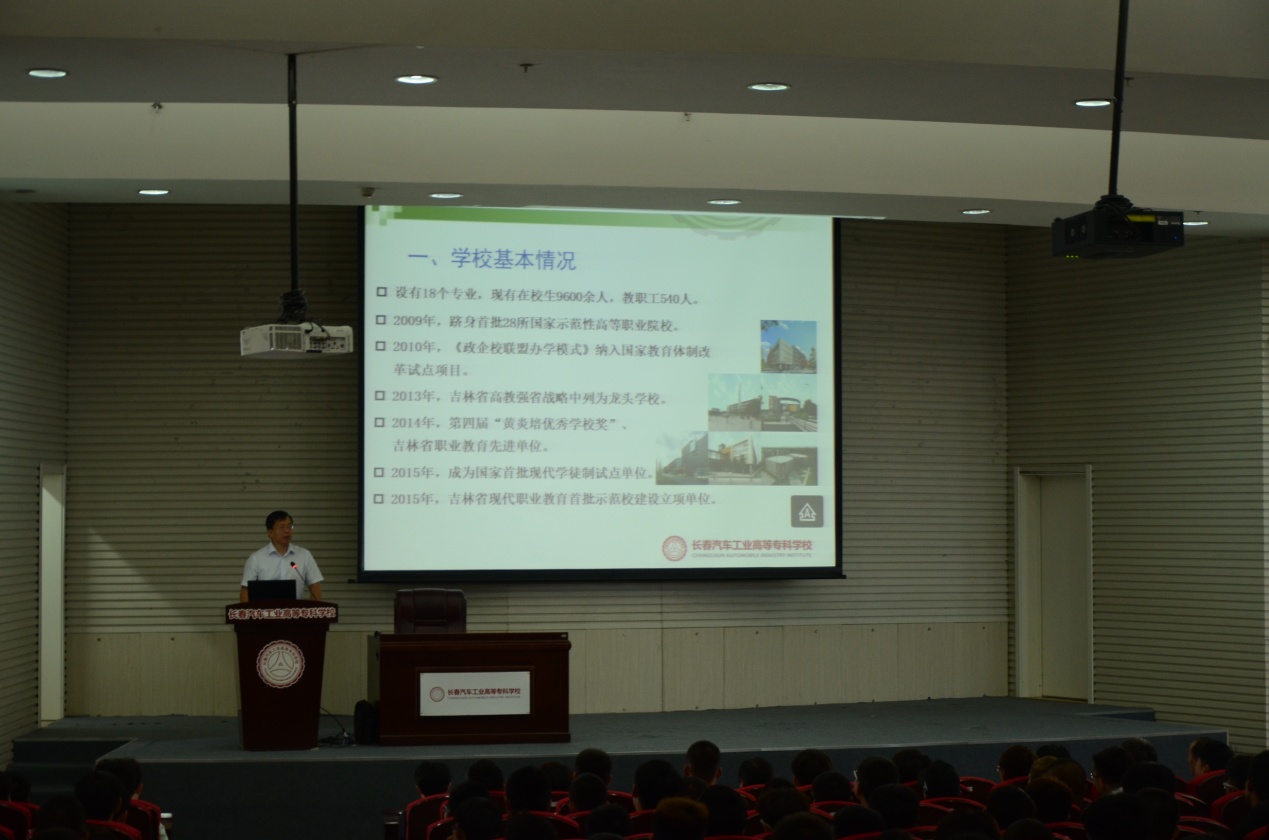 为了让2016级新生认识了解长春汽车工业高等专科学校,了解大学生活和学习的特点,帮助学生认识自我和树立信心,懂得大学自我发展和成才的方向和树立远大的理想,汽车工程学院于2016年8月29日在图书馆报告厅举行2016级新生入学教育开班式。