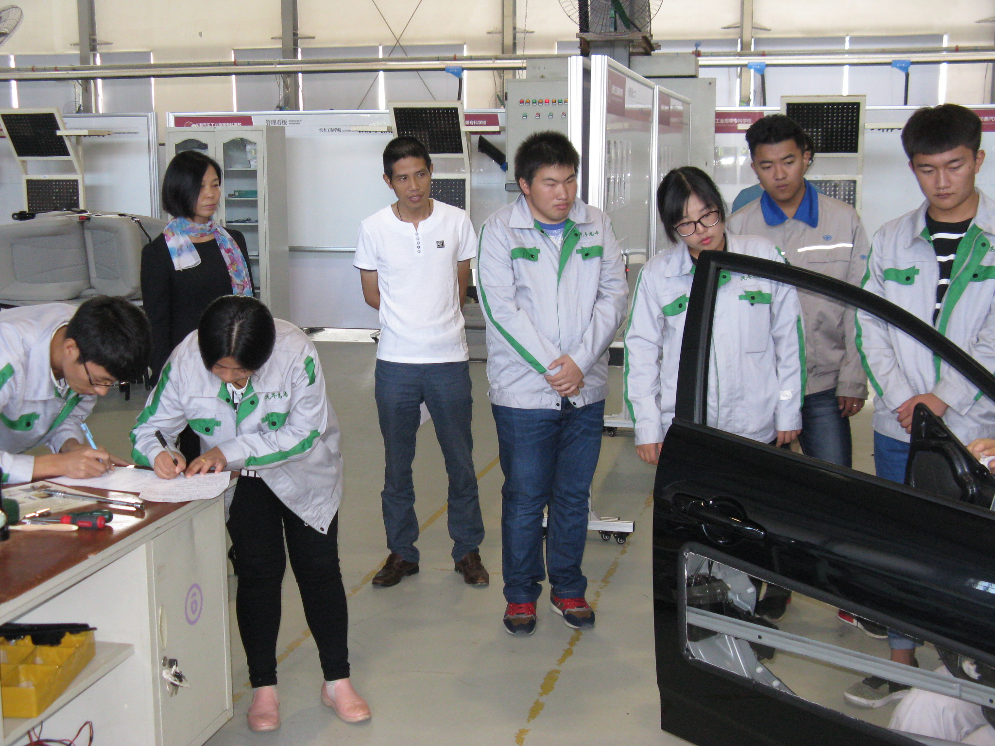 2016年9月13日浙江吉利动力总成有限公司人力资源部副部长应春来和宁波吉利罗佑发动机零部件有限公司朱葛明部长一行到我校考察,洽谈订单班项目和建设吉利汽车技术培训基地相关事宜,学校副校长胡国良,汽车工程学院院长赵宇,就业创业中心主任刘凤珠等接待吉利汽车领导。