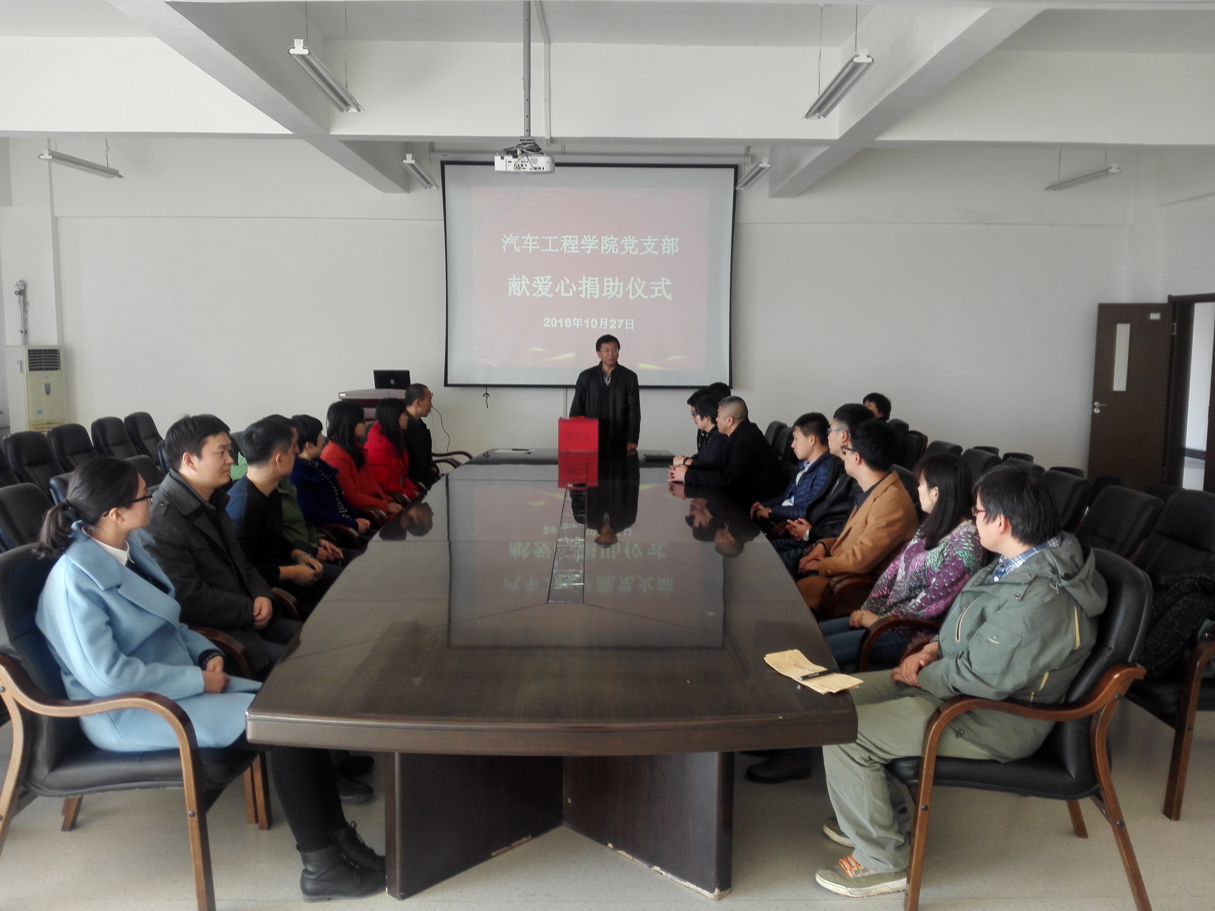 汽车工程学院党支部把“两学一做”学习教育与深入开展精准帮扶工作有机结合起来,凝聚全院党员干部职工的力量,使“两学一做”成为精准帮扶工作的一个重要推动力。学院党支部以“两学一做”为引领,贯彻落实“两学一做”学习教育从“关键少数”向广大党员拓展、从集中性教育向经常性教育延伸的总体要求,10月27日中午,汽车工程学院党支部在7号楼418会议室举行党员献爱心捐款活动,全院共计28名党员及入党积极分子参与捐款,合计捐款金额5800元,本次捐款将全部用于帮扶两名我院2016级孤儿学生。