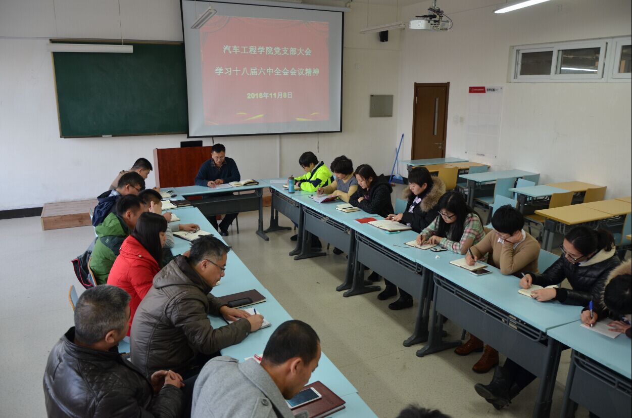 11月8日下午3点,汽车工程学院党支部在7号楼321教室召开党支部大会,专题学习党的十八届六中全会精神及《党政领导干部选拔任用工作条例》等政策法规,学院全体党员出席会议,学院党支部书记赵宇同志主持会议并讲话。