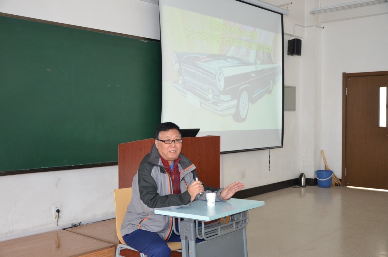 2016年11月9日,在长春天火汽车技术有限公司模型主管刘双的联络协助下,我校汽车工程学院汽车造型技术专业有幸邀请到了新中国红旗CA770轿车总设计师、中国工业设计学会会员暨常务委员、中国建筑协会全国有成就资深室内建筑师、中国美术家协会北京分会会员、中国出版工作者协会装桢艺术研究会会员、中国香港红旗车迷会顾问贾延良先生莅临我校,举办了一场围绕汽车造型专业前景及行业发展趋势的精彩讲座。汽车工程学院院长赵宇、院长助理齐琦和汽车造型技术专业师生参加了本次讲座。