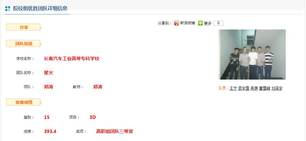 图一:汽造专业星火团队获得高职组团队三等奖