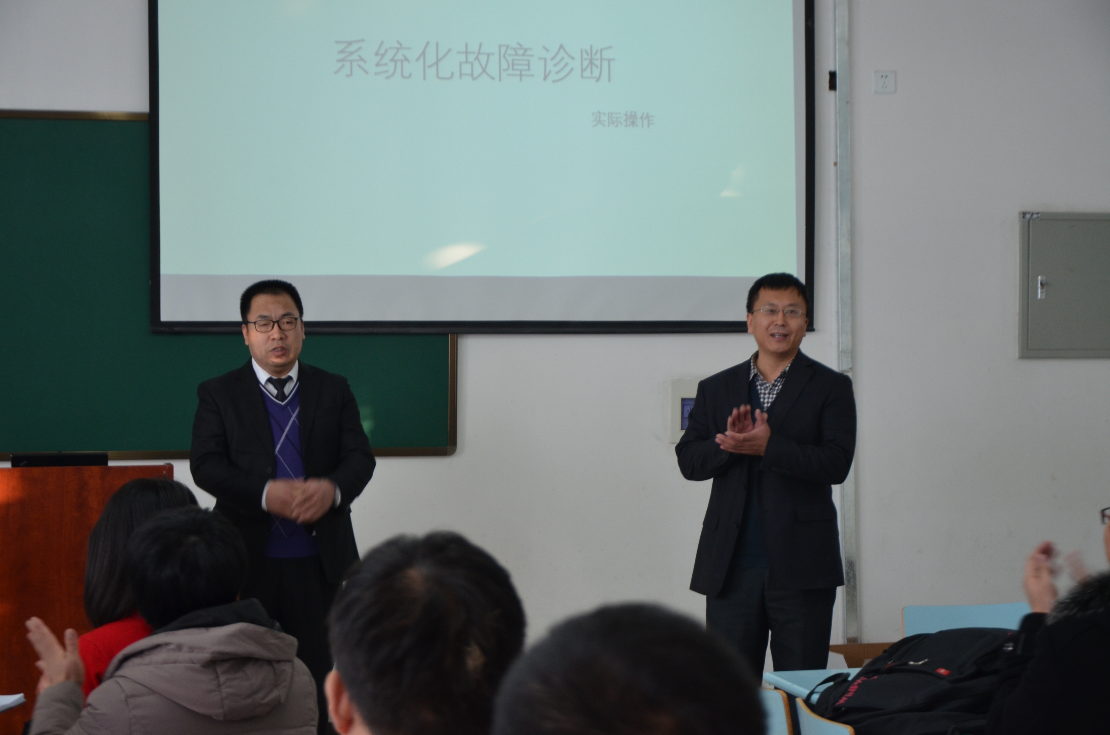 全晓龙以“系统化故障诊断”的教学思想,对我校教师进行了为期一天的培训。通过小组制作简易电机的培训方式考验我校老师的动手能力。同时还详细的讲解了在汽车售后服务时,应该注意的事项,如何避免与客户出现矛盾,如何能够快速有效的对故障车辆进行维修。并结合实际,对我校迈腾实训车进行故障设置,对大灯台架进行故障模拟,让培训老师对车辆进行诊断与排除故障,并在故障排除后对各位老师进行了点评与总结。