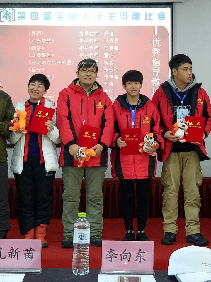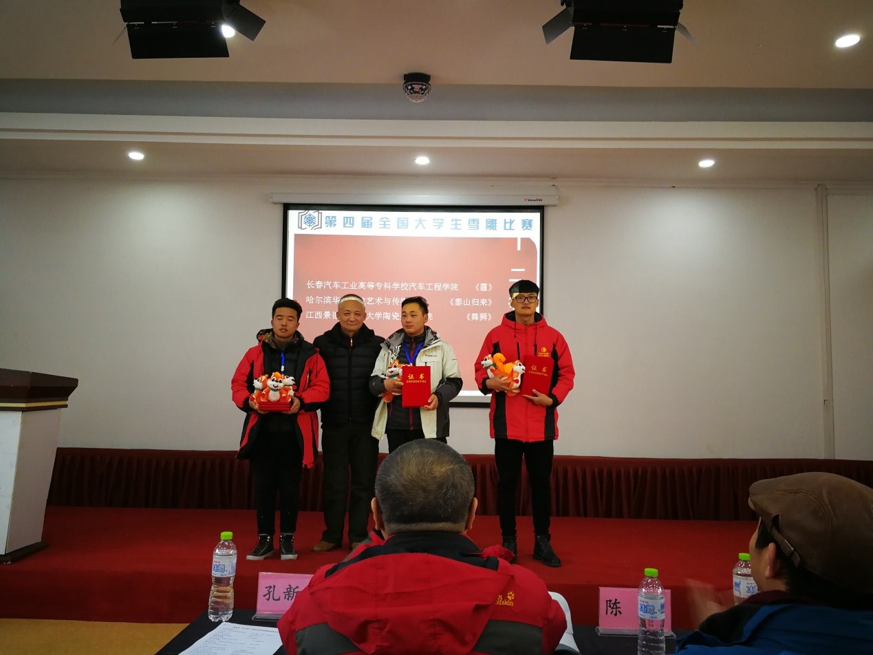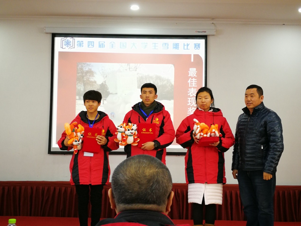 由中国艺术教育促进会、哈尔滨太阳岛国际雪雕艺术博览会组织委员会主办,哈尔滨太阳岛风景区承办的第四届全国大学生雪雕比赛2017年1月7日在太阳岛风景区落下帷幕。代表我校参赛的汽车造型技术专业15级造型班学生刘聪、孙洪涛、贾凯明以作品“霾”获得本届比赛全国“二等奖”;学生张梓旭、董春阳、张凯、于海军以作品“践行真知”获得“最佳创意奖”;指导教师郑涛获得“优秀指导教师”。本届比赛我校竞赛成绩取得了历史性突破。