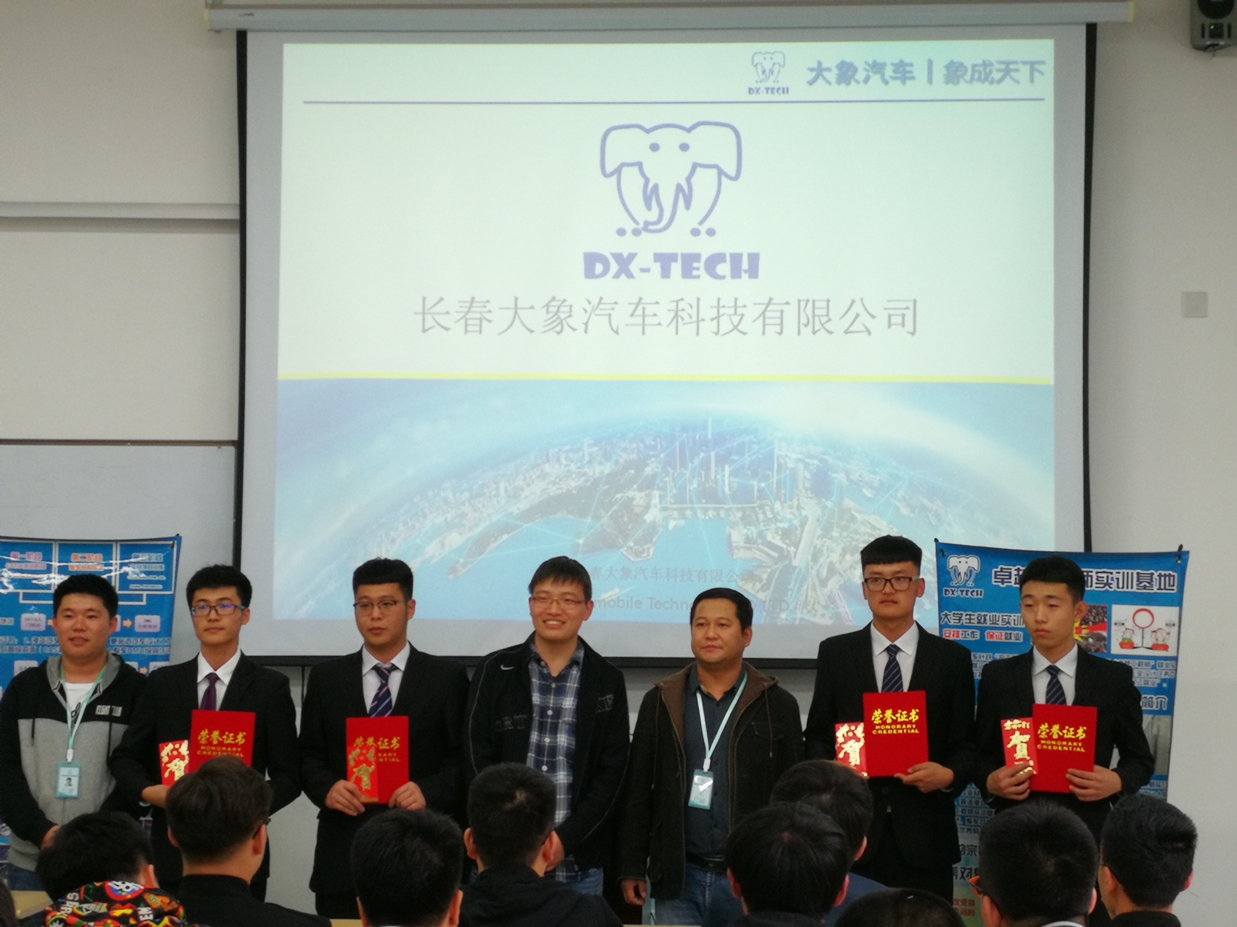 招聘会开始前,首先崔经理代表大象汽车科技有限公司为参与校企汽车造型联合开发及模型制作JX011项目的4名同学:刘聪、徐凯、张凯、吴军雕颁发荣誉证书及助学金,对于学生在项目完成过程中付出的努力给予高度评价。同时崔经理也鼓励全体专业学生今后踊跃参加校企合作项目,在企业实践中锻炼自己获得成长。