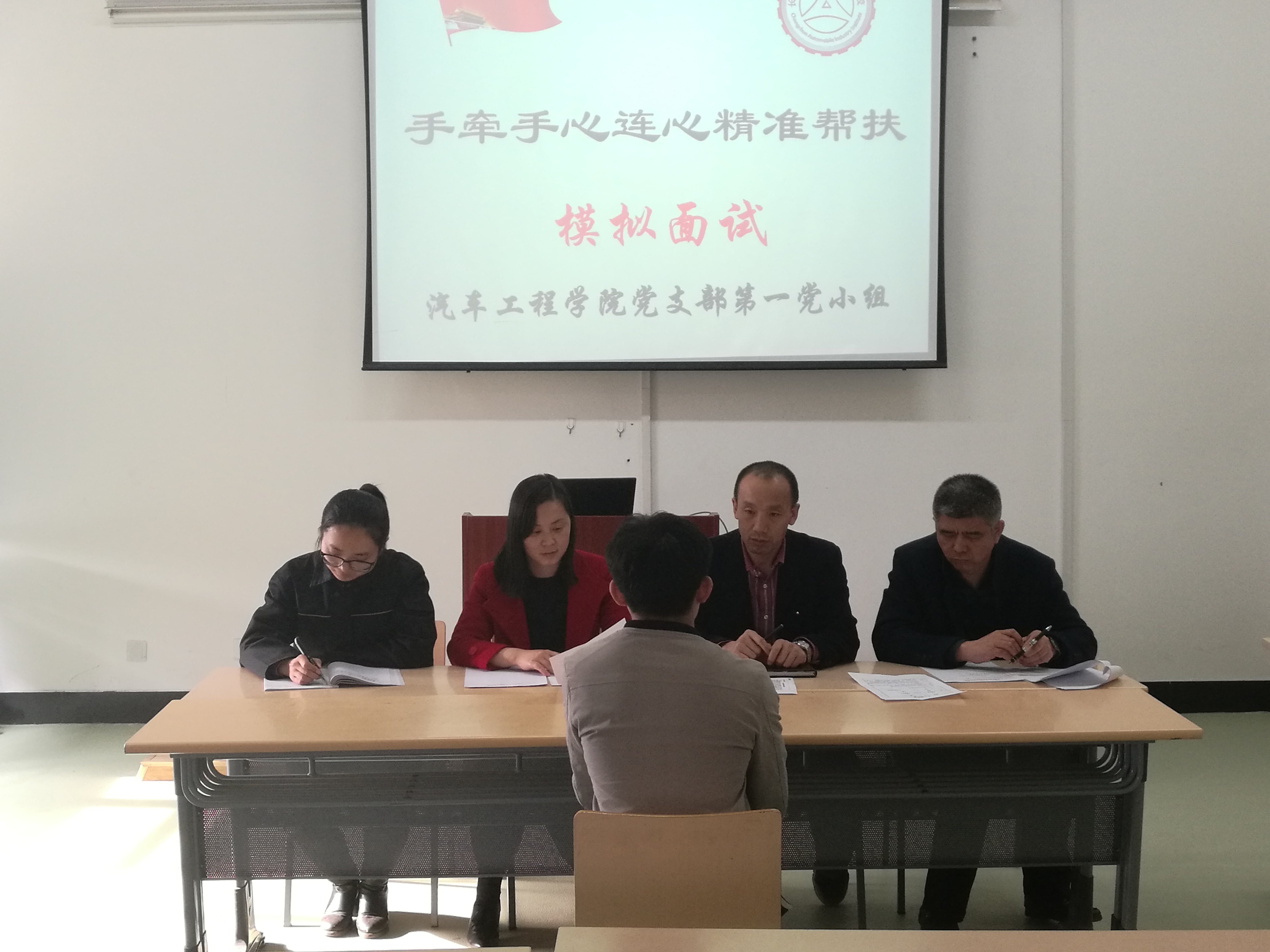2017年4月19日,汽车工程学院党支部第一党小组开展“手牵手基础培训,心连心精准帮扶”活动,此次活动针对2015级汽制专业学生进行了模拟面试并进行相关的辅导。