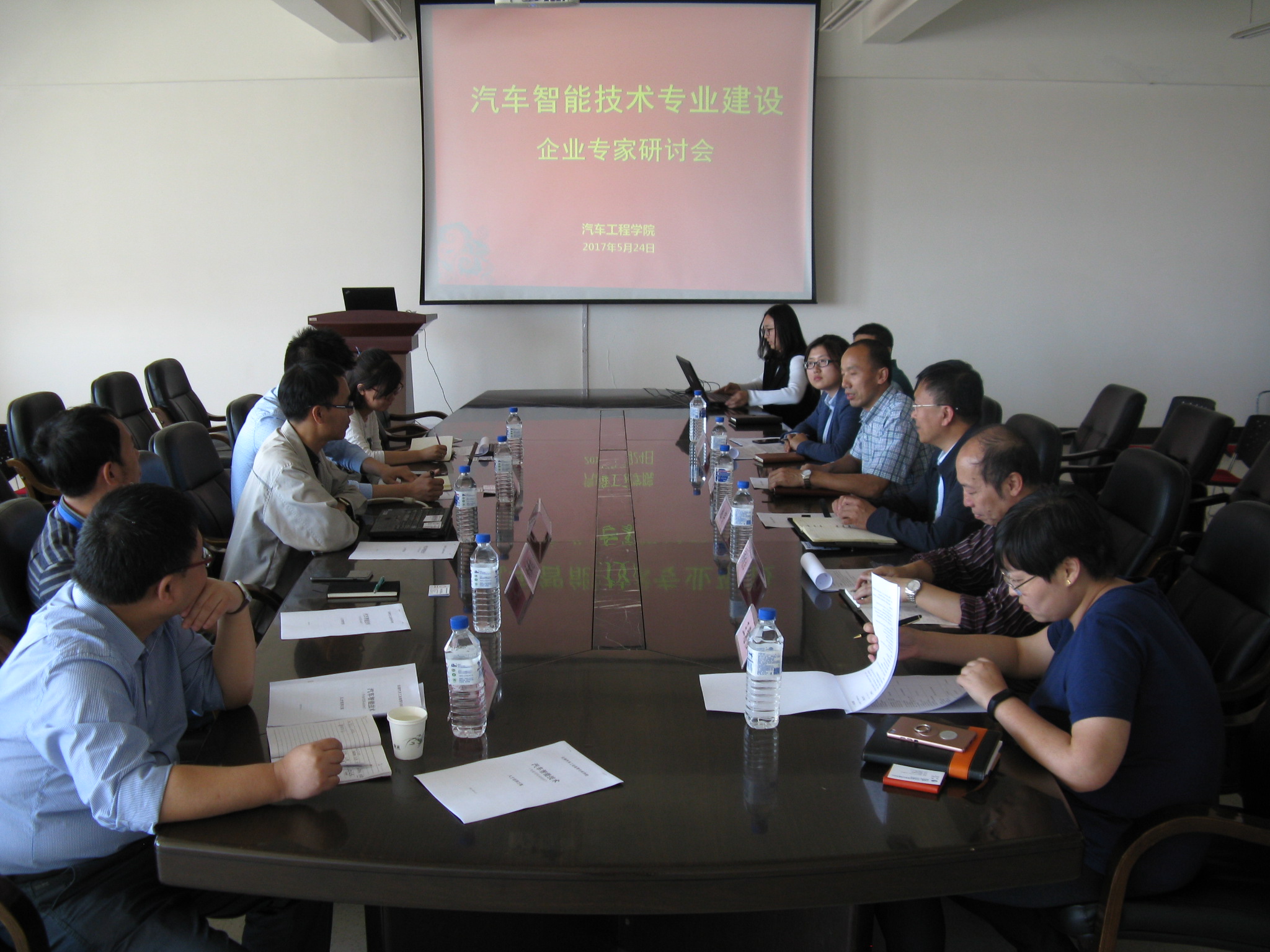 研讨会上,汽车智能技术专业负责人郝俊首相向大家介绍了该专业目前的建设情况。随后,刘斌主任对智能汽车的研究现状、发展趋势、核心技术、人才需求等方面进行了详细的讲述,为专业建设提出了多项建设性意见。王建华教授凭借多年的教学及研究经验,讲解了智能汽车专业的培养目标,通过对比其他院校专业建设情况,给出了构建汽车智能技术专业课程体系的宝贵建议。各位专家在会议上各抒己见,激烈讨论,为我校新专业的课程设置和实训场地建设提供了宝贵的意见,并表示将大力支持我校新专业的建设及发展工作。