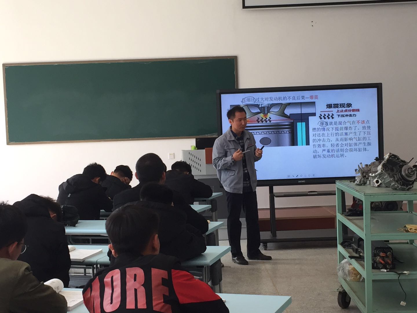 陈思老师授课内容是四冲程发动机工作原理。他用深入浅出的语言和形式讲授了各个疑难知识点。整个教学过程知识点条理清晰,课堂气氛活跃,学生思考问题积极主动。