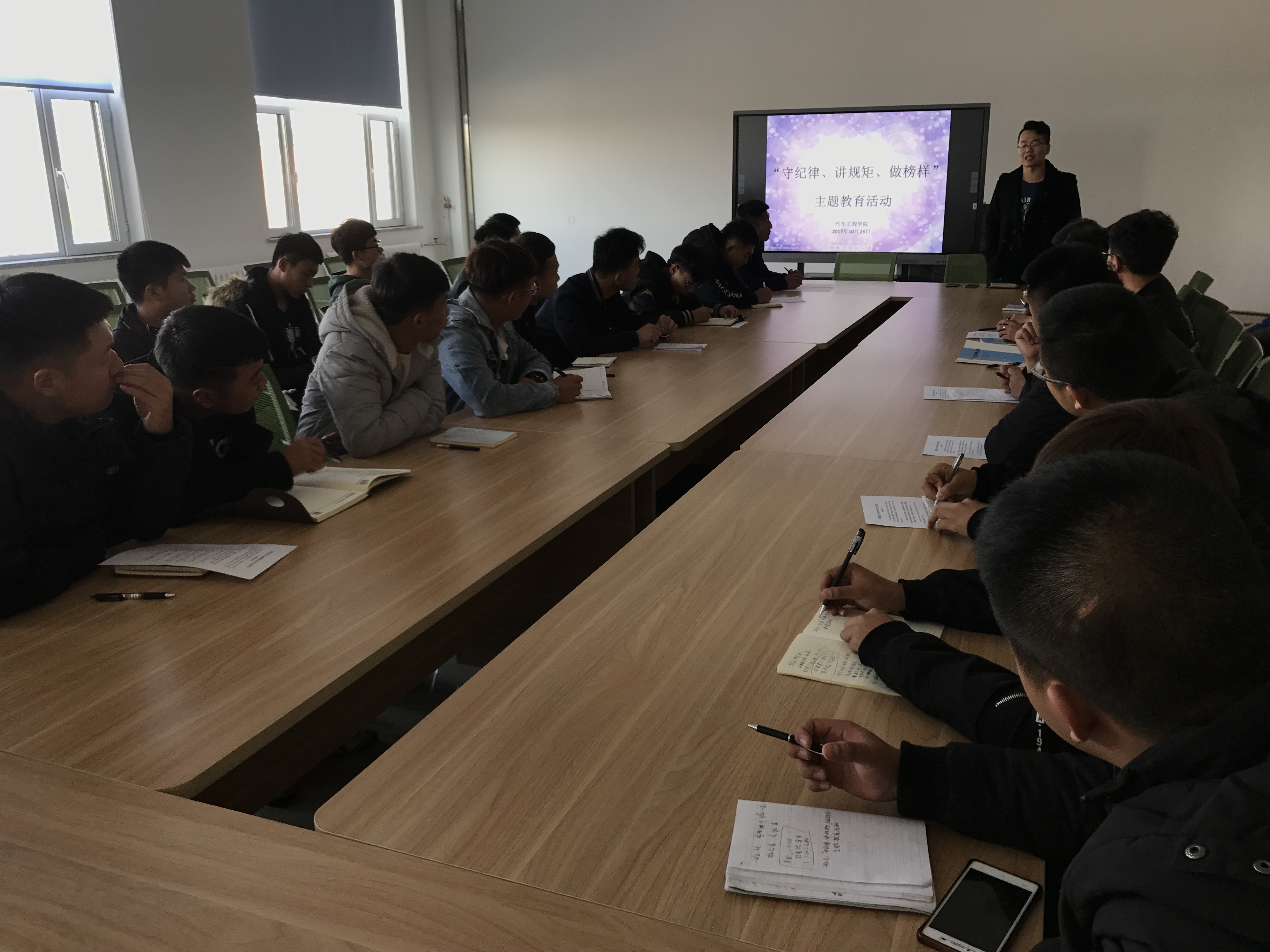 10月24日,各班利用晚自习时间组织了相同主题的教育活动。各班纪委书记带领同学们解读法规法纪、校规校纪,强调了校规校纪在校园生活中的纲领性作用,督促学生时刻规范行为、遵守纪律。在各班班长的带领之下,学生们分享此次教育活动的心得,交流学习感悟。此次活动为学生团体的自主学习,学习效果良好、教育意义深刻。