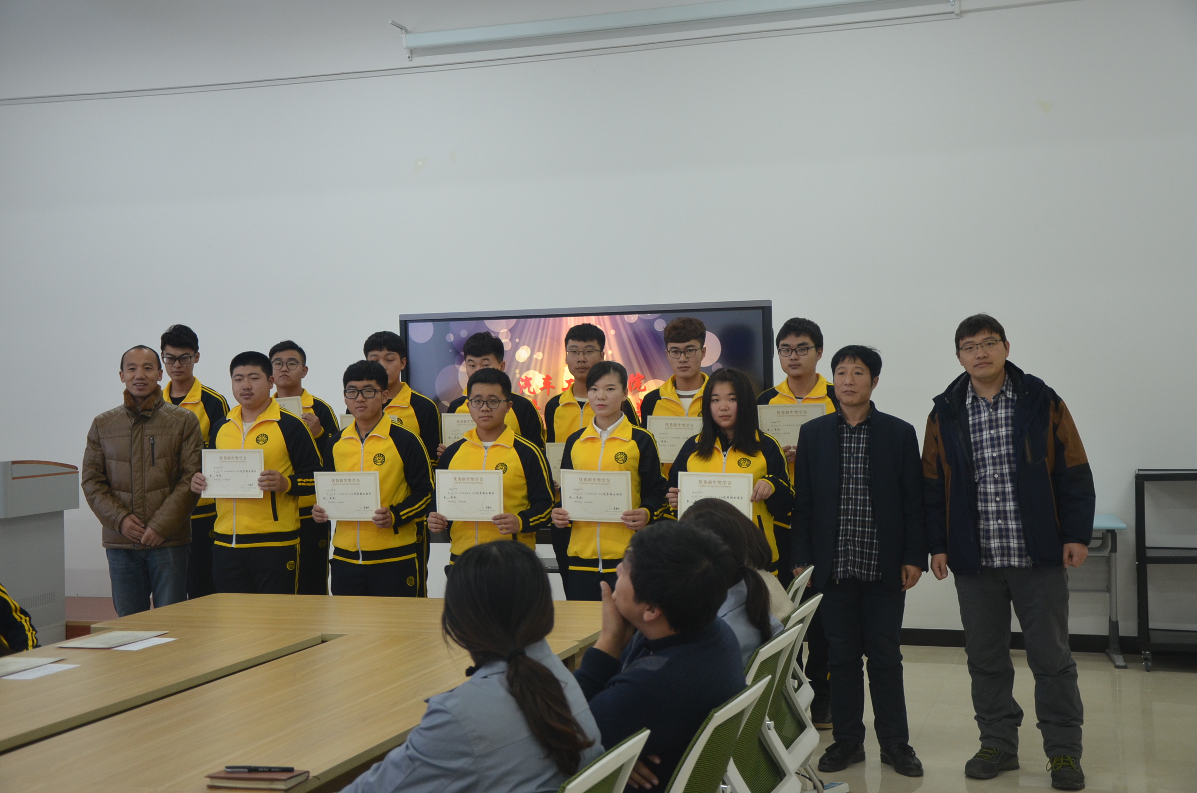 学校优秀新生奖学金的确立为了在物质上帮助学生,精神上培育学生,能力上锻炼学生,充分发挥资助与育人的双重功效。2017年12月7日,汽车工程学院于学院319会议室召开“汽车工程学院优秀新生奖学金颁奖仪式”活动。院长赵宇、副院长王慧怡、院长助理兼办公室主任齐琦、各教研室主任及部分专业课教师代表应邀出席。