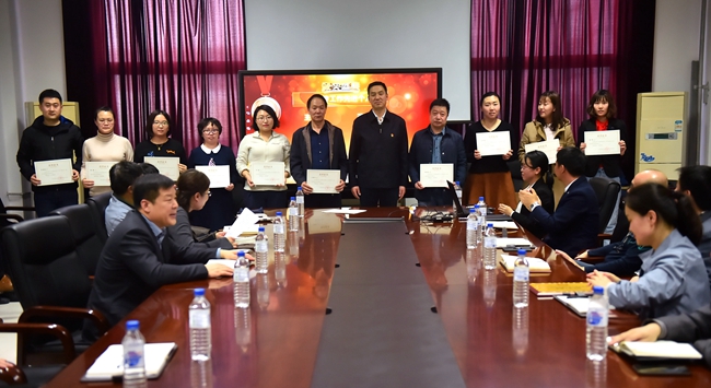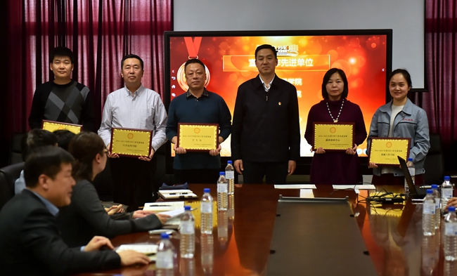 我院被学校评为宣传工作先进集体,宣传员王春波被评为先进个人,校党委书记安军为获奖部门和个人颁奖。