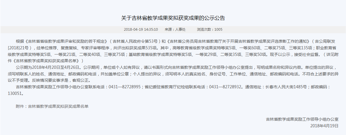 我校在吉林省教学成果奖中共有六项成果获奖,其中汽车工程学院的教学成果《以新能源汽车技术为引领的汽车工程专业群人才培养的研究与实践》荣获三等奖,为我院培养新能源汽车技术专业的人才提供了理论和实践依据,为新能源汽车技术专业的发展助力。