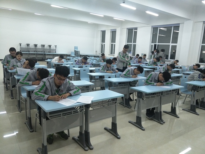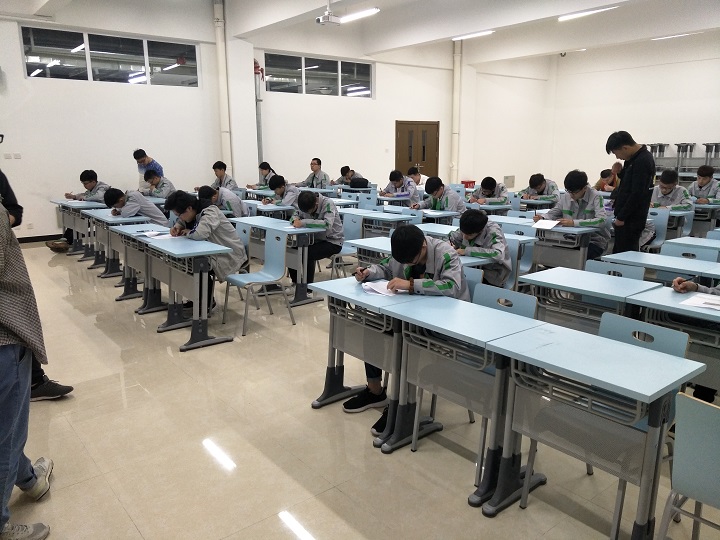 领跑者车队秉持着理论指导实践的标准,利用一周的时间策划、整理、交付指导教师审稿,编制一套包含“公共”“专业”两个模块的试卷,于2018年4月26日本周四组织车队队员们在工作室进行考核。考试无人缺席,队员们认真思考、专心作答,考场秩序井然只听得沙沙落笔的声音,在考试结束后队员们按时交卷并完成5S后依序离场。