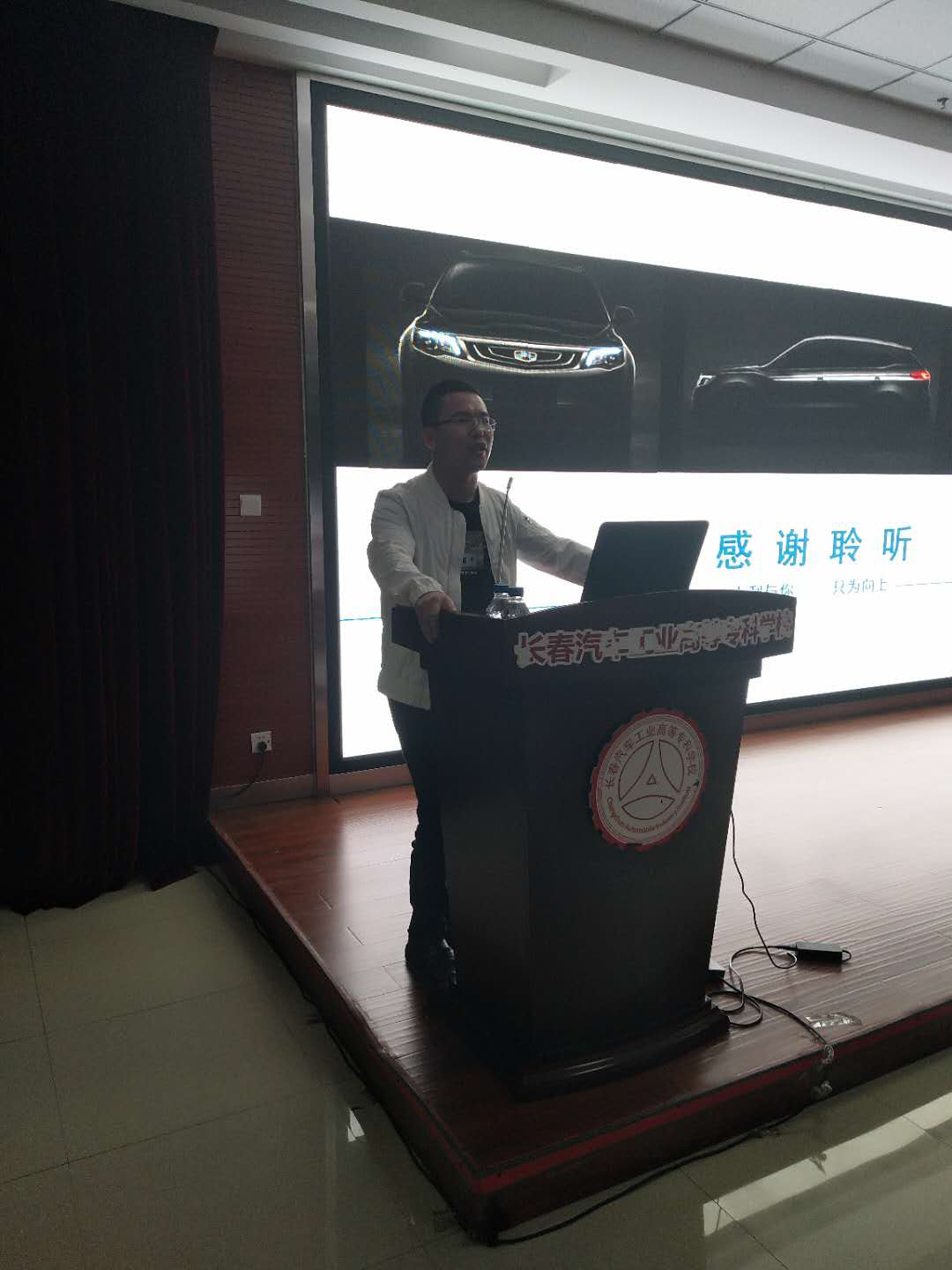 汽车工程学院的杨老师,吴老师,刘老师和16届、17届学生参加了此次报告会。王纪校友,从2015年10月至今工作于吉利汽车研究院,通过自我不断的学习和提高成为吉利汽车研究院的中坚力量,现在担任整车试制中心车身试制经理。王纪学长向学生们简单介绍了吉利汽车研究院,吉利去年的销量为120万辆,国内自主品牌第一名。学长建议学弟学妹们要做有准备的人,参加面试前一定要做充分的准备;要有一技之长,保持自己的优势,要有学习能力;在工作之余丰富自己,使自己的人生更加丰富多彩。同时王纪学长也希望有更多的人才加入到吉利的大家庭中。