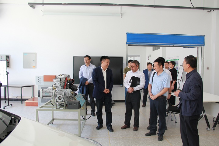 在调研期间,学校李春明校长,明晓辉副校长、胡国良副校长陪同调研组一行到我院调研参观,我院赵宇院长和王慧怡副院长陪同参观,并介绍了汽车工程学院的专业建设情况,调研组对我院新能源汽车技术专业等新专业建设给予充分的肯定,随后,我院领导参加座谈会。