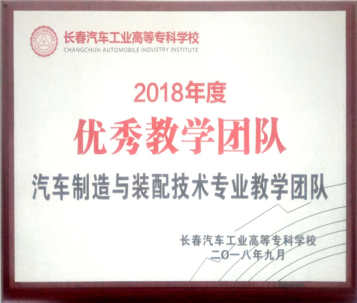 汽车工程学院汽车制造与装配技术专业教学团队在2017-2018年度学校教学工作评比中,喜获“2018年度优秀教学团队”荣誉称号。