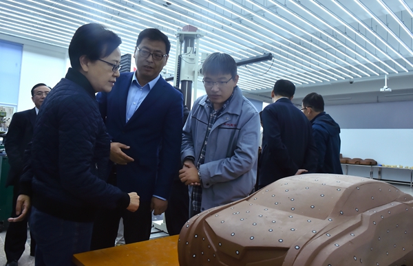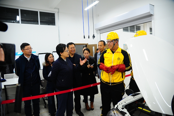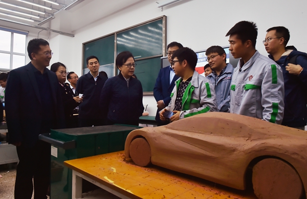 10月26日下午,鲁昕同志一行4人,在省教育厅副厅长战高峰、省教育厅职成处处长宋春辉等领导的陪同下,到长春汽车工业高等专科学校开展职业教育调研工作。调研组一行在校党委书记安军、副校长胡国良、副校长丁卓及相关部门负责人陪同下第一站就到达我院参观调研。调研组先后参观汽车造型实训室、新能源汽车技术实训室、吉利人才培养培训基地。每到之处,鲁昕同志与师生亲切交谈。在与汽车造型技术专业和新能源汽车技术专业学生交谈时,详细询问学生专业学习情况、职业理想及对职业教育的期许等,在与侯建、王有坤、郑涛等教师交谈时,重点听取教师对职业教育的认识,并对教师提出希望,同时鲁昕同志对我院理实一体化实训基地建设给予充分的肯定,我院师生深受鼓舞,进一步激发干事业的热情。