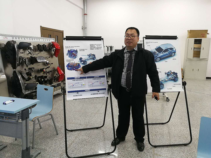 12月24日,长白山技能名师全晓龙在百忙之中抽出时间来到我校,为吉林省高职业院校新能源汽车原理与维修培训班学员进行专业技能培训。全晓龙老师借助LN奥迪Q5混合动力汽车实训台给学员们讲解了奥迪Q5混动汽车的结构原理与检修方法,课堂教学以实际故障案例为载体,采取理论讲解、小组研讨、动手实践相结合的方式进行。