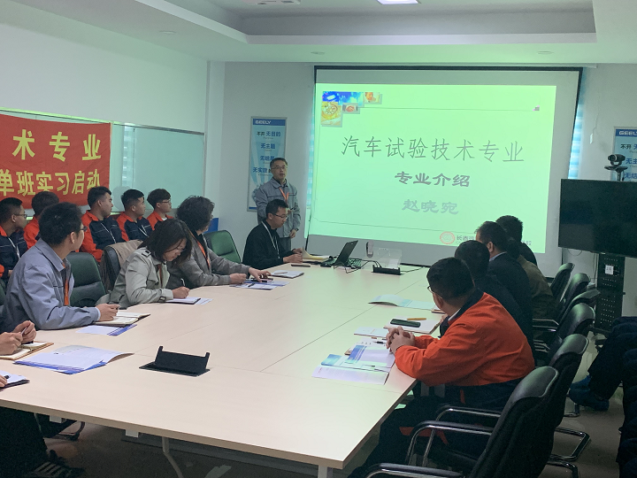 4月16日上午,在吉利动力研究院召开了我校吉利动力研究院-汽车试验技术专业订单班实习启动仪式。出席本次订单班实习启动仪式的成员有,企业方吉利动力研究院试验中心汪纪伟总监、人事经理吴永文及相关部门领导,我校汽车试验技术专业赵晓宛老师、王哲老师,学校就业处杨光伟老师,汽车运用学院高荣老师。