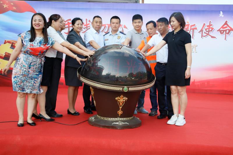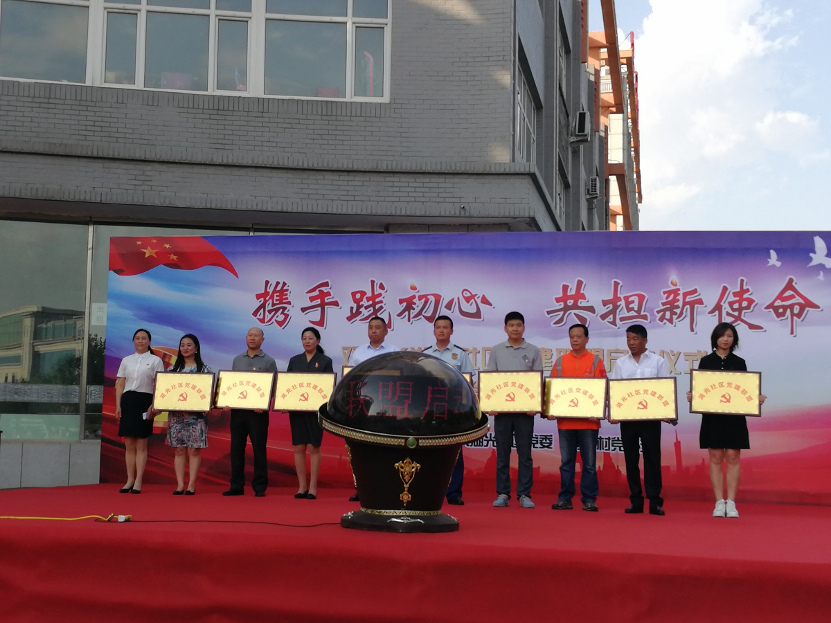 启动仪式上,汽车工程部党支部副书记齐琦代表学校与社区党组领导、其他社区共建单位共同推动启动球,湖光社区党委书记黎秀荣为我校授牌。
