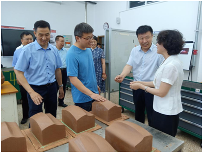 吴兰一行首先来汽车工程学院进行了调研参观,对汽车造型实训室、汽车试验技术实训区、新能源汽车实训室、汽车装调实训区进行实地调研指导。调研中,吴兰不时与老师交流,了解专业情况和学生教育情况。