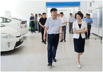 图一吴兰一行在汽车造型实训室调研图二吴兰厅长和李春明校长在新能源汽车技术实训区交流
