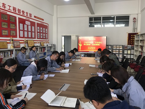 2019年10月12日9:40,汽车工程部党支部全体党员在党支部宣传委员侯建同志的领学带领下,集中学习了«习近平关于“不忘初心、牢记使命”论述摘编»第二章节“新时代中国共产党的历史使命”的相关内容。