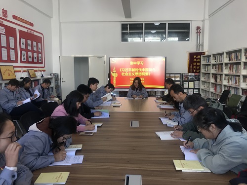 2019年10月15日9:40,汽车工程部党支部全体党员在党支部第二党小组组长杨舒乐同志的领学带领下,集中学习了«习近平新时代中国特色社会主义思想学习纲要»第一章节“中国特色社会主义进入新时代”的相关内容。