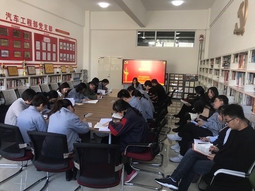 2019年11月7日9点40分,汽车工程部党支部由李亚杰同志领学,全体党员集中学习了《习近平关于“不忘初心牢记使命”论述摘编》第一章的相关内容。