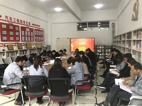 2019年11月12日9点40分,汽车工程部党支部由李新伟同志领学,全体党员集中学习《习近平关于“不忘初心、牢记使命”论述摘编》第二章的相关内容。