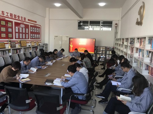 2019年11月15日9点40分,汽车工程部党支部由李敬辉同志领学,全体党员集中学习《习近平新时代中国特色社会主义思想学习纲要》第五、六章的相关内容。