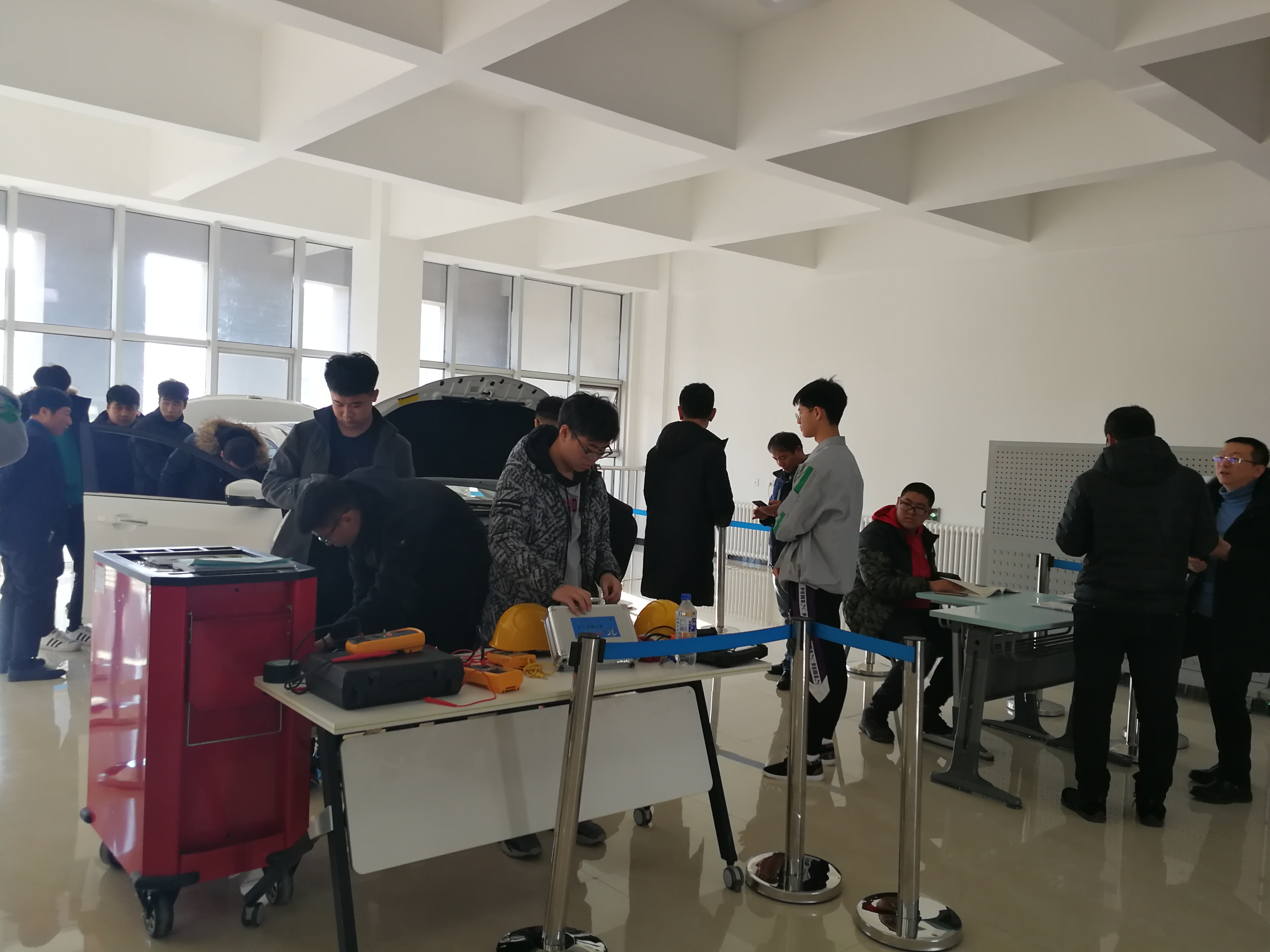 为保证大赛公平公正,由智能新能源汽车技术教研室主任赵振宁做指导,对八个参赛队进行了集中技术培训。在竞赛模拟工位,赵振宁老师利用四个小时时间针对竞赛车辆电路识读、故障诊断、工具使用做了系统的讲解。此次培训,参赛选手表示受益匪浅,并对大赛充满了信心。