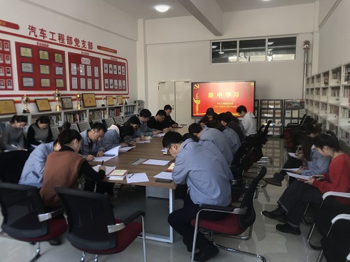 2019年12月19日9点40分,汽车工程部党支部由惠兆文同志领学,全体党员一同学习了《习近平总书记系列重要讲话汇编》中关于习近平总书记“上下共同努力,进一步办好职业教育”的相关内容。
