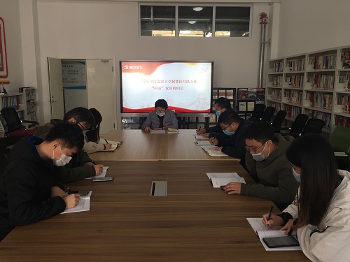 2020年4月10日9点40分,汽车工程部党支部由杨宇同志领学,全体党员集中学习关于习近平给北京大学援鄂医疗队全体“90后”党员的回信的相关内容。