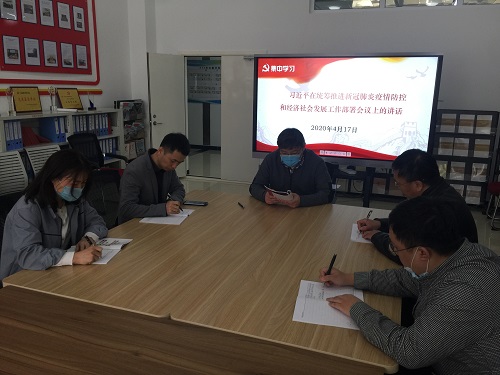 2020年4月17日9点40分,汽车工程部党支部由郑涛同志领学,全体党员集中学习关于习近平在统筹推进新冠肺炎疫情防控和经济社会发展工作部署会议上的讲话的相关内容。
