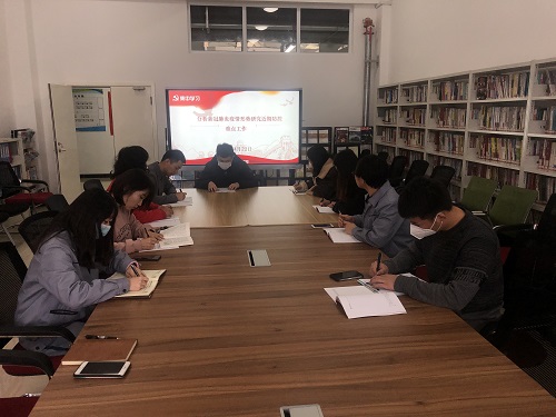 2020年4月22日9点40分,汽车工程部党支部由王春波同志领学,全体党员集中学习中共中央政治局常务委员会召开会议上分析新冠肺炎疫情形势研究加强防控工作的相关内容。