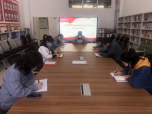 2020年4月27日9点40分,汽车工程部党支部由石亚洲同志领学,全体党员集中学习习近平总书记在决战决胜脱贫攻坚座谈会上的讲话的相关内容。