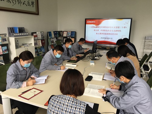 2020年5月21日9点40分,汽车工程部党支部由陈思同志领学,全体党员集中学习了《习近平新时代中国特色社会主义思想三十讲》第五讲:中国特色社会主义新时代标示我国发展新的历史方位的相关内容。