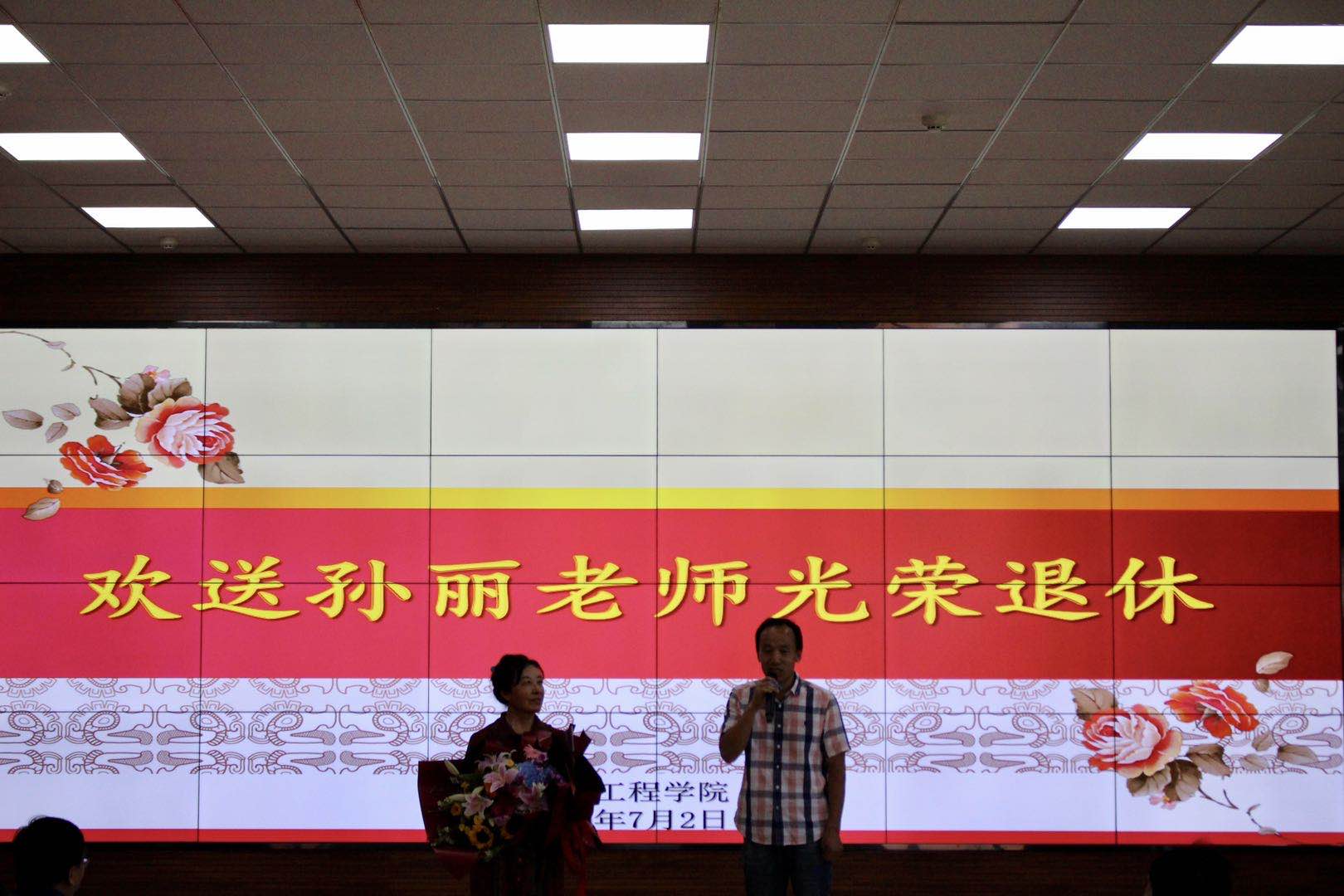 7月2日下午,汽车工程学院全体教师为孙丽老师的退休举行了简单而又温馨的欢送会,欢送会由学院副书记赵良富主持。