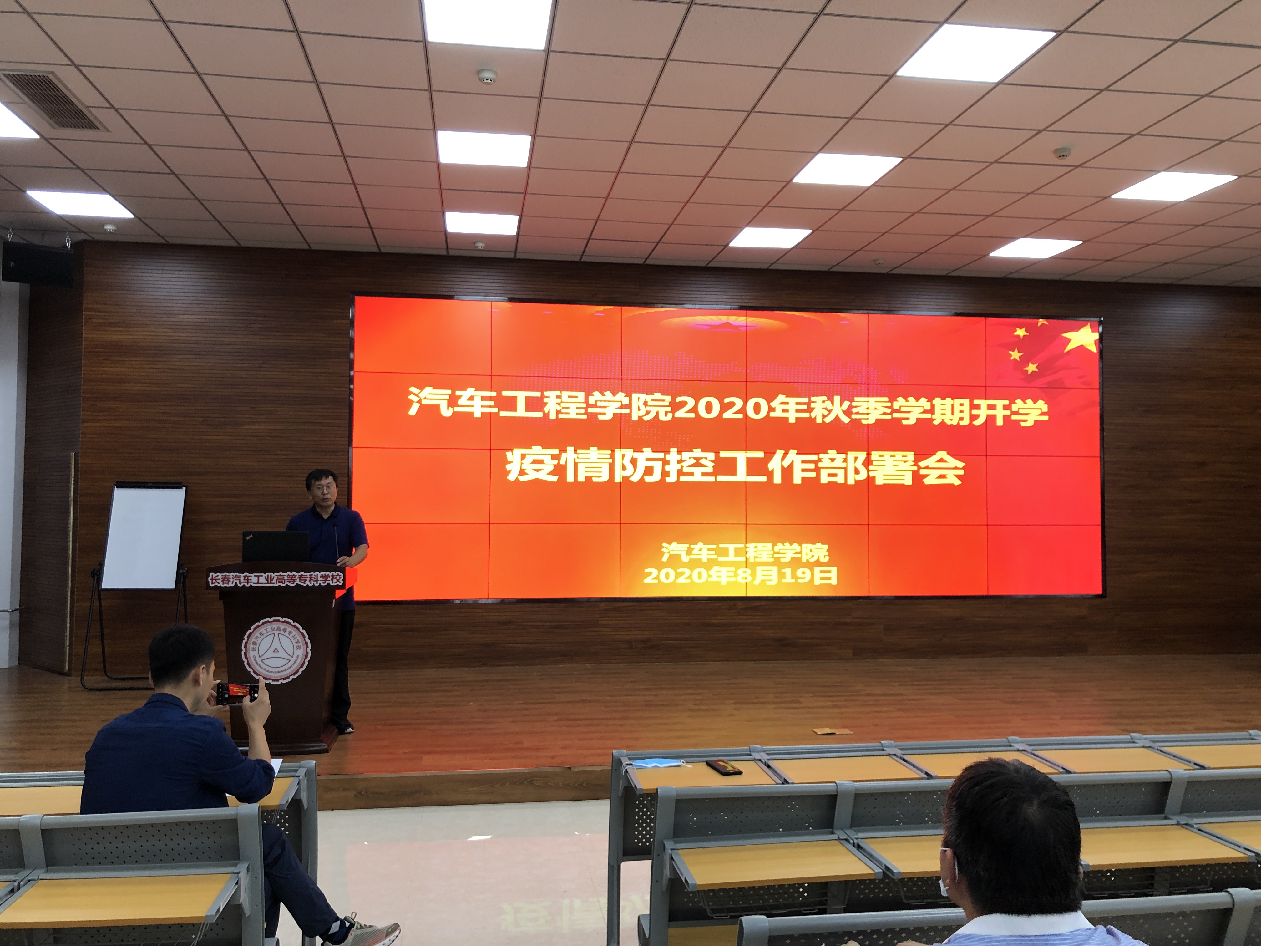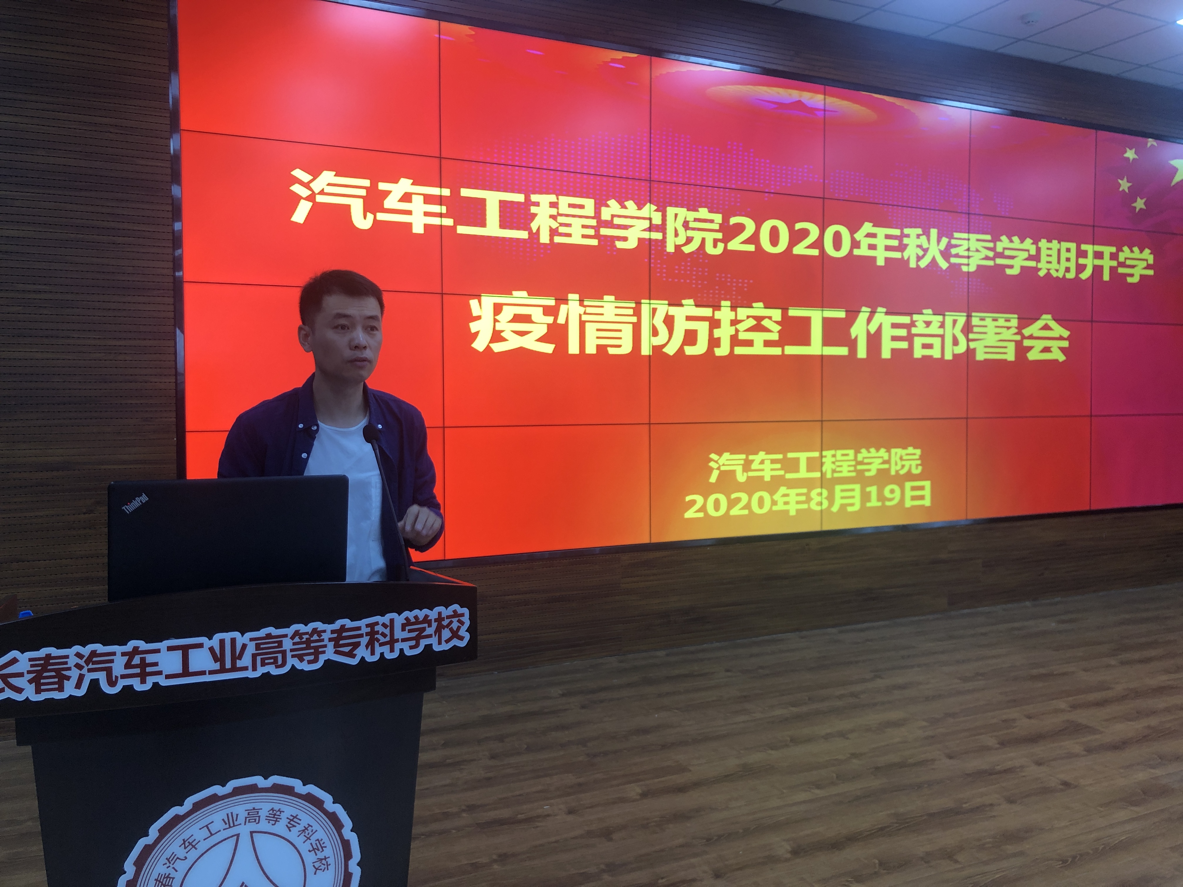 副书记赵良富首先传达了《长春汽车工业高等专科学校新冠肺炎疫情防控期间秋季开学返校复课工作方案》和学校秋季开学疫情防控部署会的会议精神,对返校工作的相关要求进行了详细解读。副书记赵良富强调,全院教师和学工队伍要认真做好开学前的准备工作,精准摸排学生信息,严格审核返校名单,做好学生的诚信教育,督促好学生如实填写返校健康监测卡以及行程表,学生返校后要严格落实“一日三报告”制度,严格落实好学生返校后的请假的相关要求,时刻关注学生的思想动态及心理情况,持续抓好常态化疫情防控形势下的思想政治工作,积极教育引导全体学生增强“四个意识”、坚定“四个自信”、做到“两个维护”。