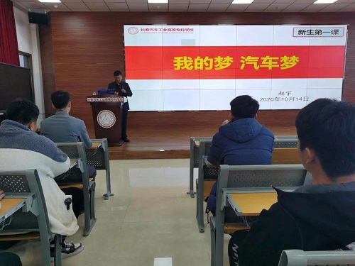 汽车工程学院院长赵宇一直以来都将新生入学教育作为学生大学学习之路的第一级台阶,希望通过第一课帮助同学们提高思想高度,明晰未来方向。赵院长从学院概况、师资力量、特色专业等方面给大家进行了介绍。汽车工程学院与多家企业建立了产业合作,为同学们创造了良好的专业条件和就业保障,赵院长希望同学们可以刻苦上进,为祖国的繁荣富强尽一份力。同时针对20级新生刚刚迈入大学生活,年纪尚轻、阅历尚浅的现状,院长从5S公寓管理、吸烟、安全、网瘾、校园贷、毒品等方面对学生提出纪律要求。希望学生明辨是非、严守底线,积极改正自身陋习、健康身心,度过平安充实的大学生活。他强调:长春是新中国汽车工业的摇篮,我校是培育优秀汽车产业大国工匠的沃土,在我校“双高”建设的特殊时期,每一个汽专学子应当敢于承担的新的责任与使命,真正做到“知行合一,圆梦自主”做中国汽车人!