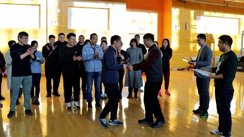 本次比赛项目由“踢犍子”、“拖球跑”、“定点投篮”、“跳大绳”4个团体项目组成,4个小组在队长的带领下,展开了一场速度与激情的比拼。短暂的比赛,大家充分释放激情,脸上洋溢着灿烂的笑容,共同享受运动带来的快乐。经过两个小时的比拼,第三小组获得第一名,第一小组获得第二名,第二小组获得第三名。学院领导为获奖队代表颁发了奖状。