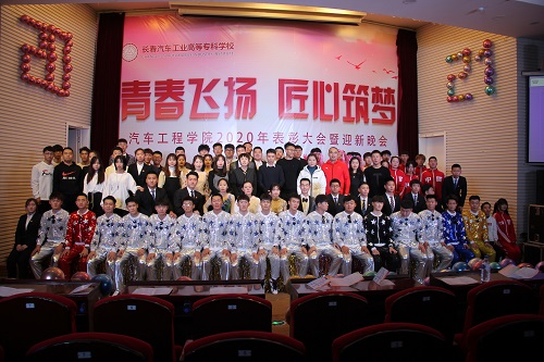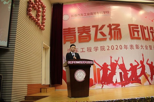 2020年12月17日下午,汽车工程学院“青春飞扬 匠心筑梦”2020年度表彰大会暨迎新晚会在学院报告厅举行。长春汽车工业高等专科学校副校长胡国良、总务处处长杨大志、保卫处处长李明东、公共教学部部长潘孝春、思政部部长张红庆、党委宣传部负责人田野、汽车工程学院院长赵宇以及兄弟学院的党支部副书记、团总支书记、辅导员老师及学院的教师出席了此次活动。本次大会分两部分。