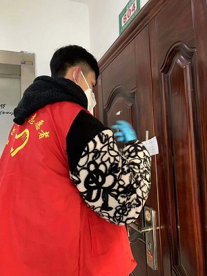 图四 2020级学生张蒲全,在通化市柳河县胜利社区逐户排查居民信息